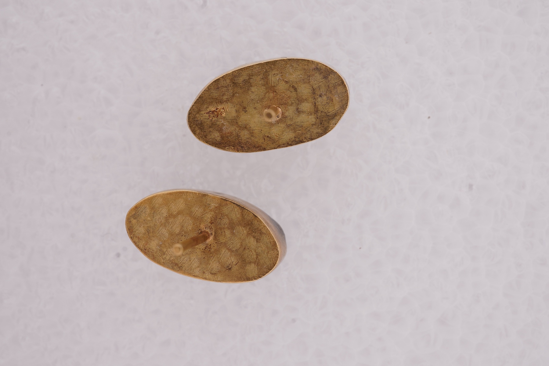 A pair of opal triplet studs, each collet-set with an opal triplet, mounted in gold, length 1.7cm, post fittings, stamped 18ct, combined gross weight approximately 5 grams