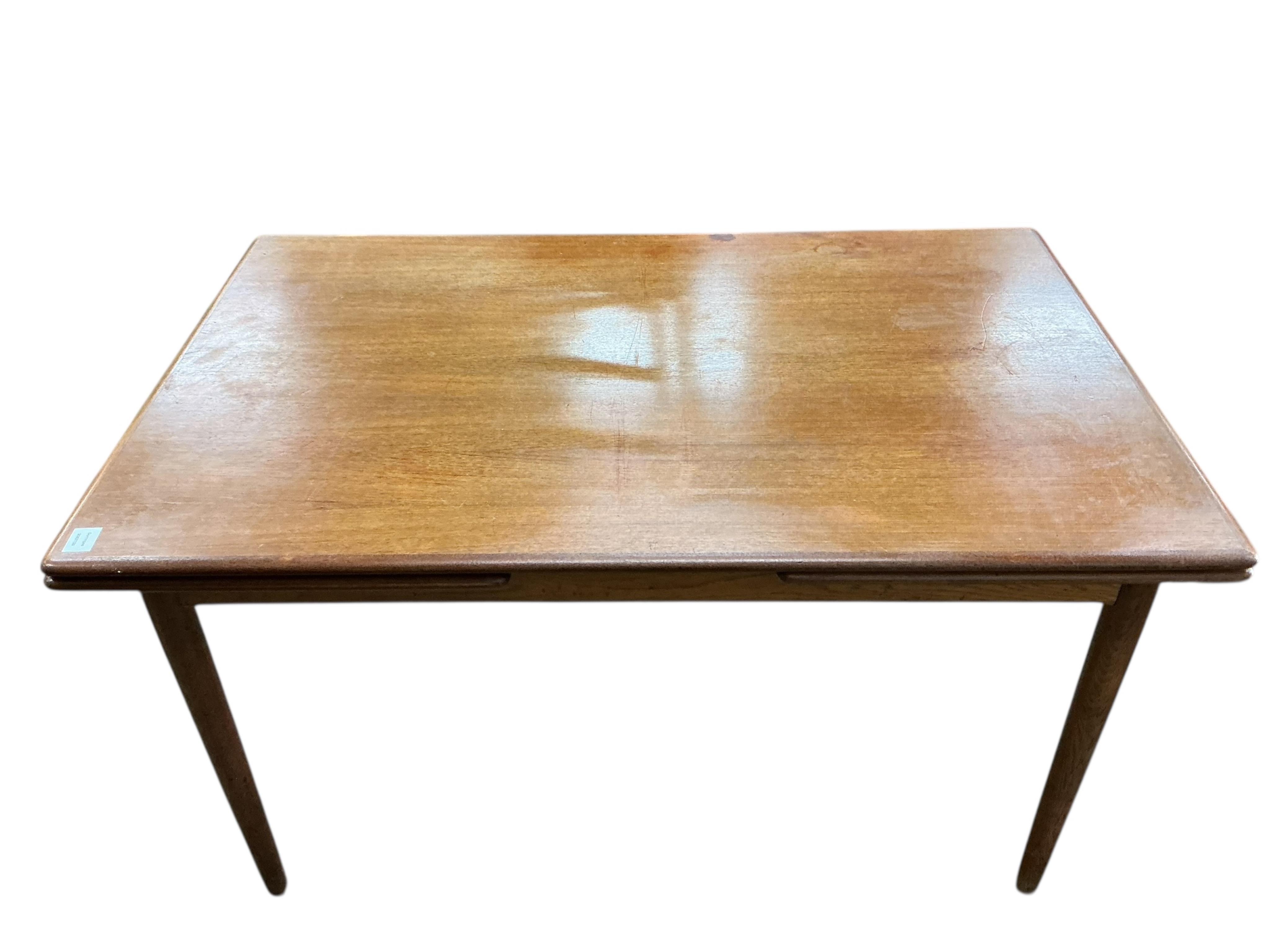 Lot 214 , A mid century Danish teak draw leaf dining table, extended 235cm, width 133cm, depth 85cm, height 75cm