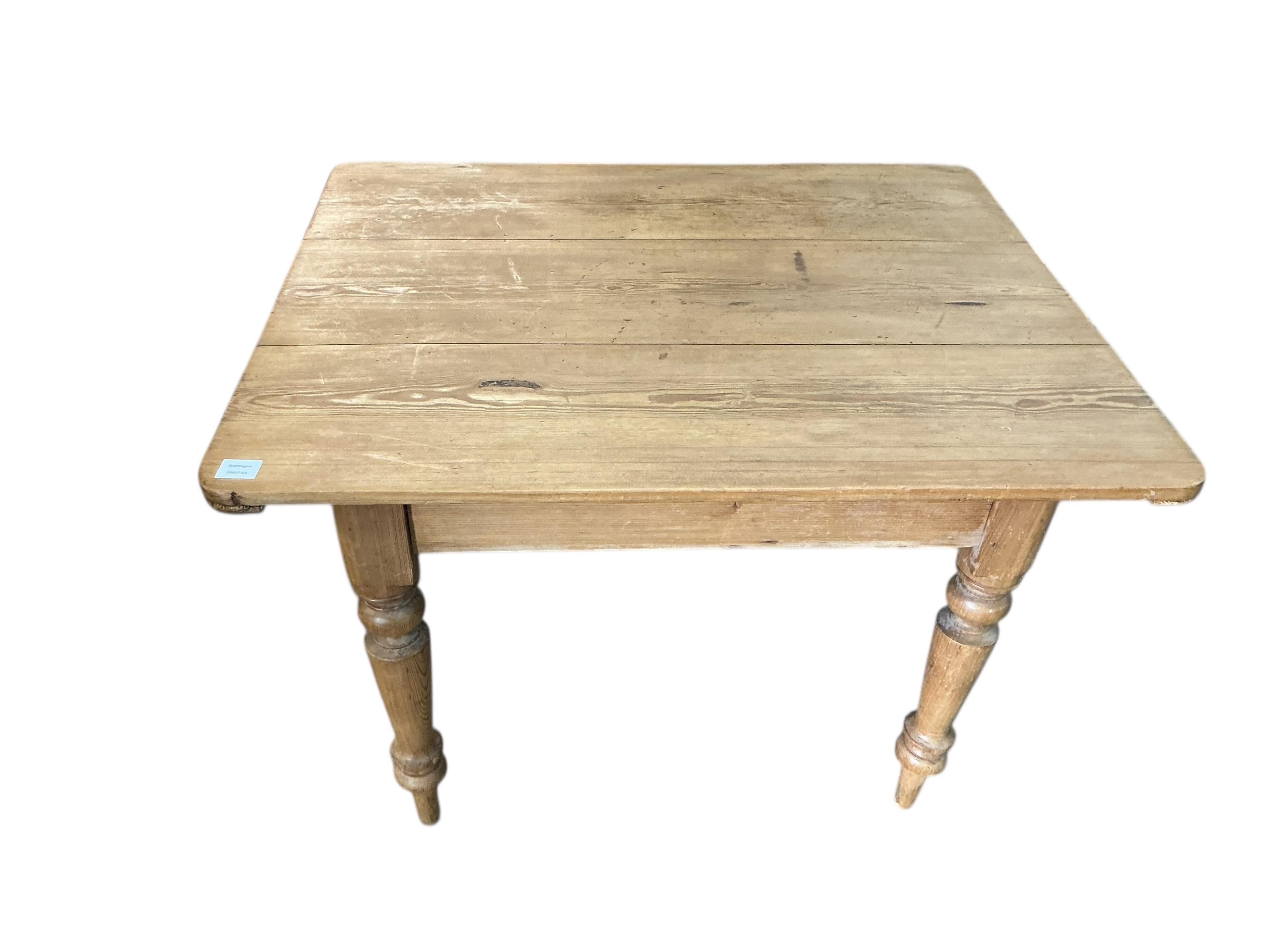 A Victorian pine kitchen table, width 109cm, depth 90cm, height 72cm