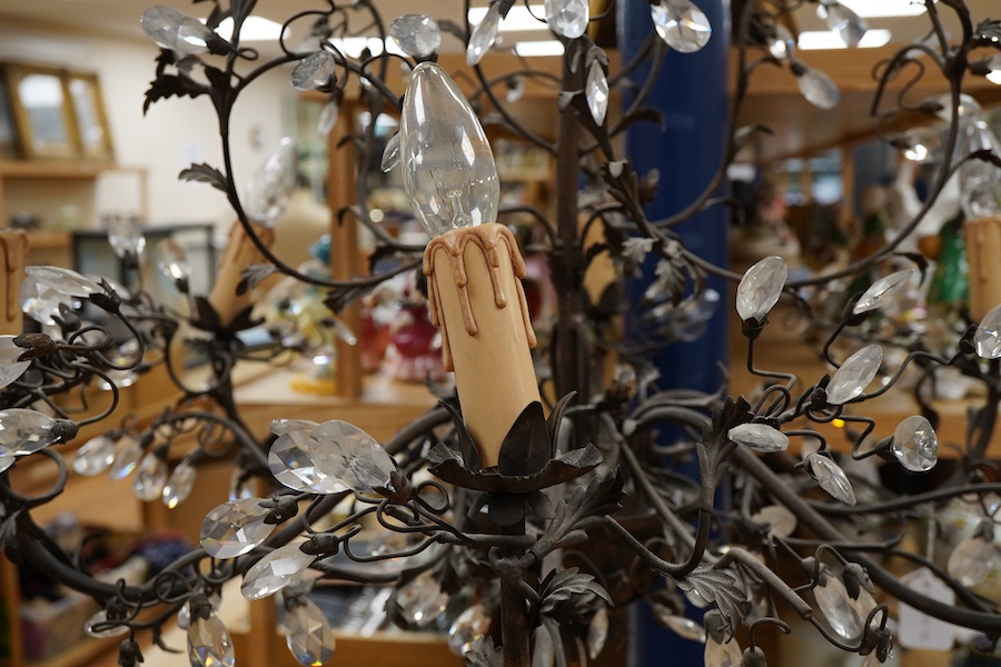 A decorative French floral cut glass and metal chandelier, 80cm high