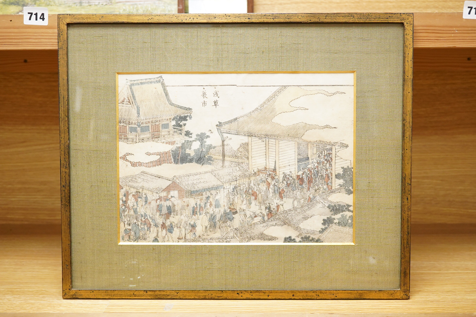 Lot 713 , After Hokusai (1760-1849), ‘View of the Prosperity of Sensoji Temple at Asakusa’, label verso, 19th century Japanese woodblock print, 21 x 29cm