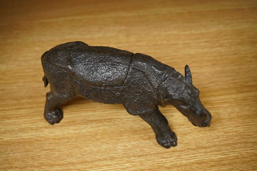 An Austrian bronze novelty inkstand in the form of a rhinoceros, unsigned, 20cm wide