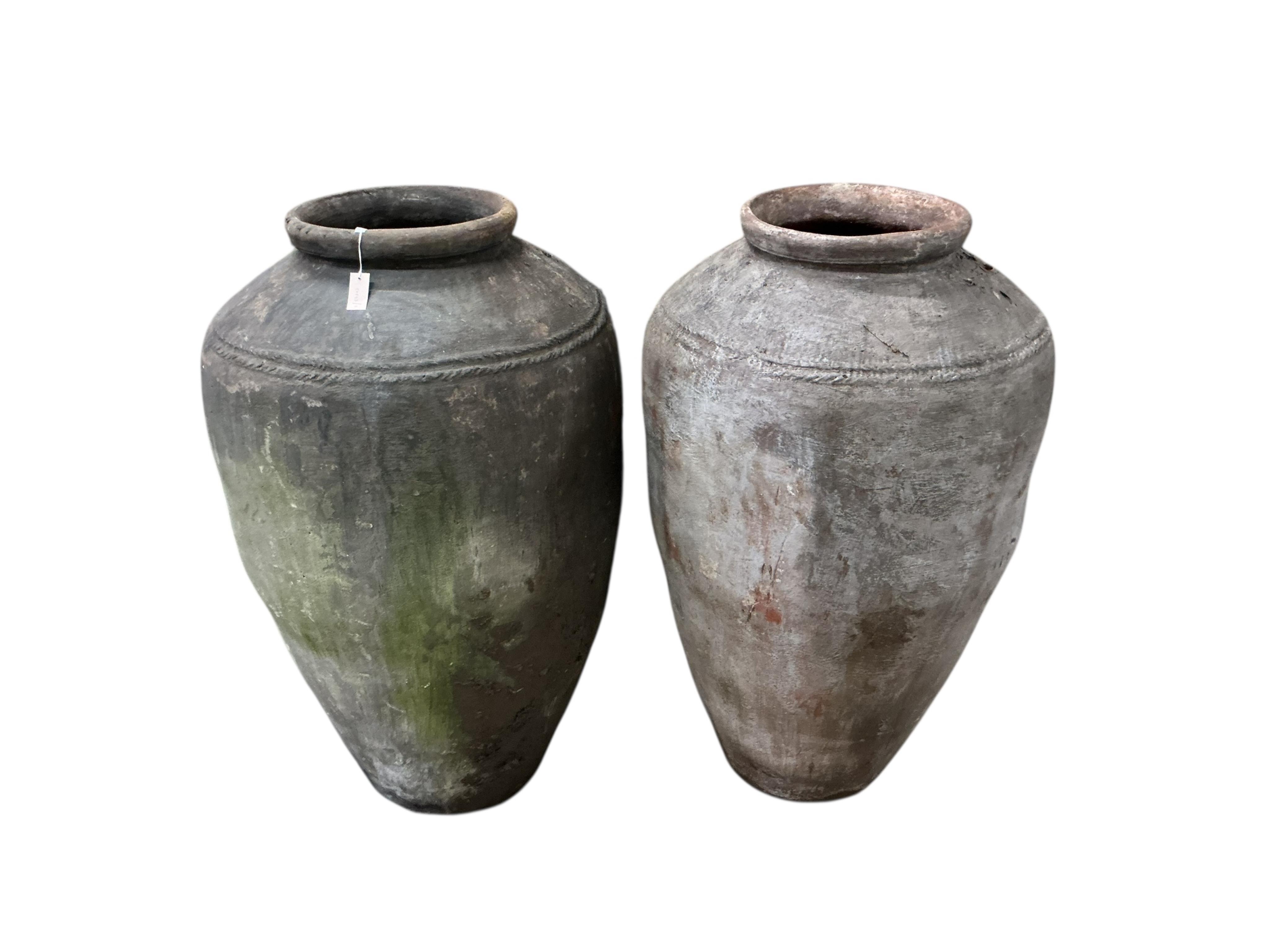 A pair of massive clay and composition jars, height 140cm