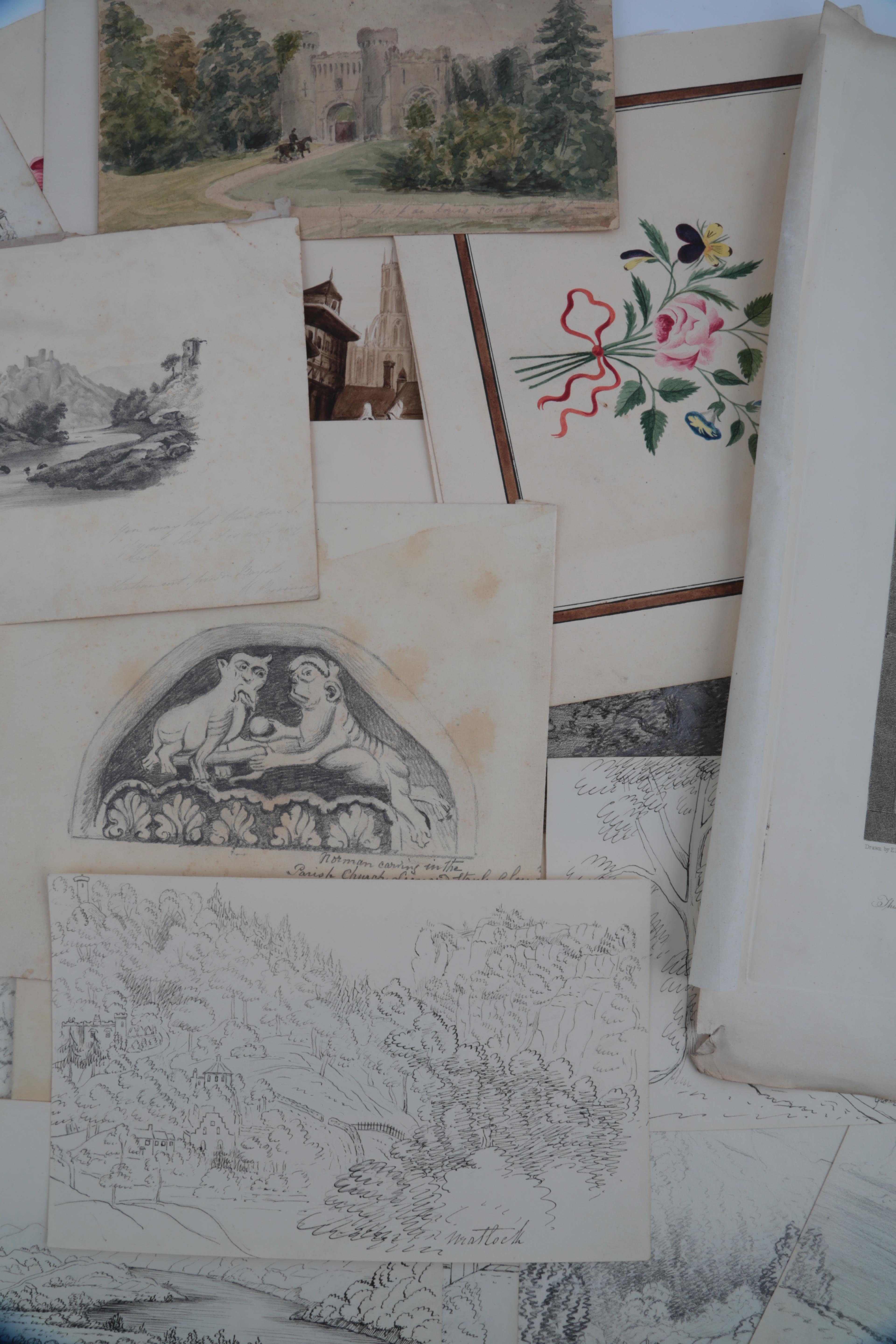 Lot 105 , English School, 19th century, A portfolio of charcoal, pencil and watercolour sketches
