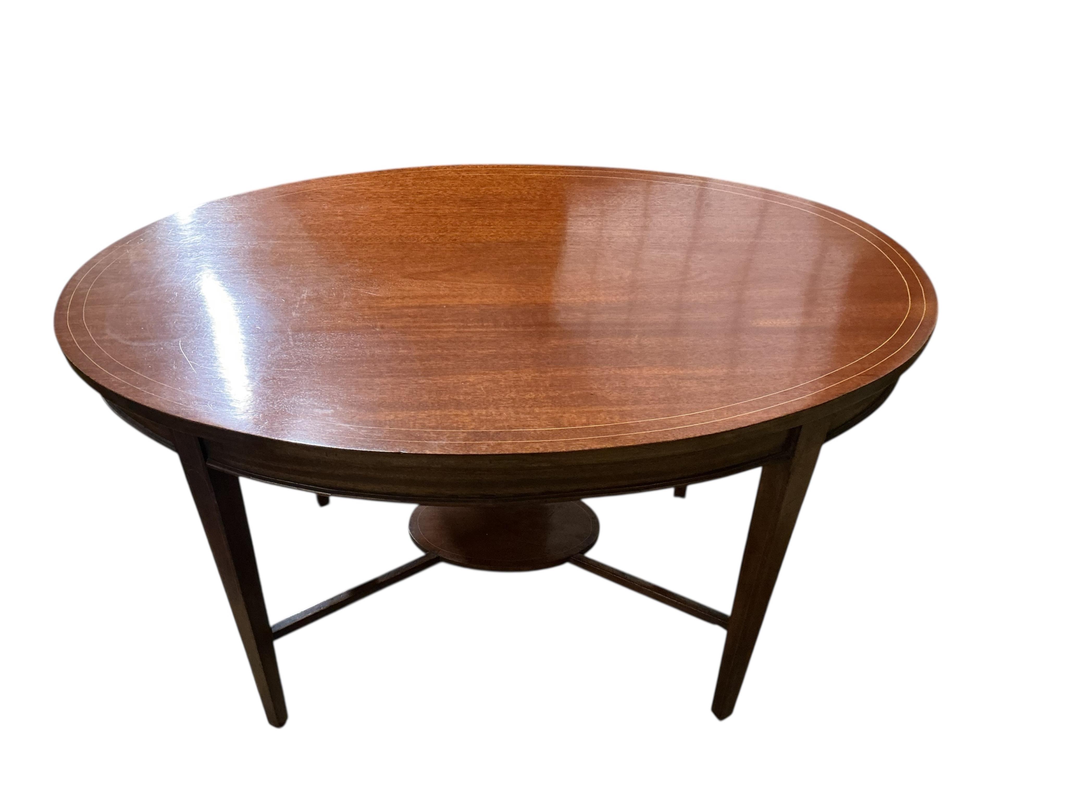 An Edwardian oval mahogany centre table, width 102cm, depth 59cm, height 64cm