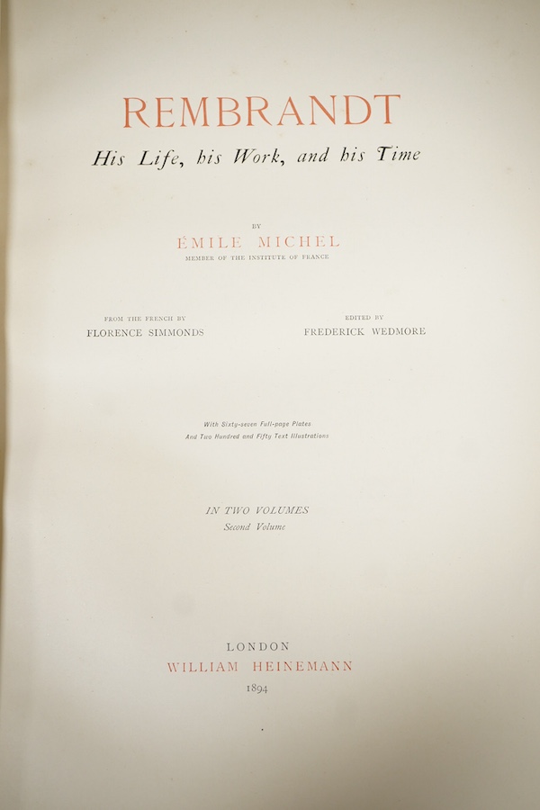 Lot 342 , Emile Michel - Rembrandt, His Life, His Work and his Time, in two volumes, pub. Heinemann, 1894