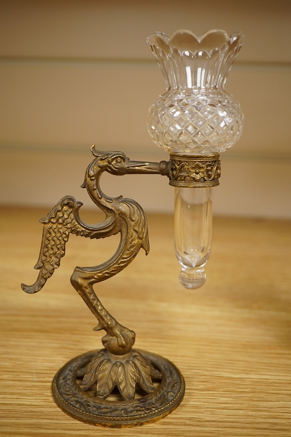 A pair of Osler ormolu and glass posy vases, 19cm high