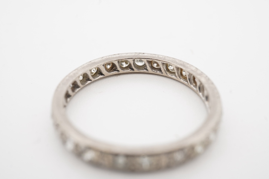 Lot 1158 , A diamond eternity ring, mid 20th century, set with a continuous line of brilliant-cut diamonds totalling approximately 1.20 carats, mounted in platinum, size P1/2, gross weight approximately 2.5 grams