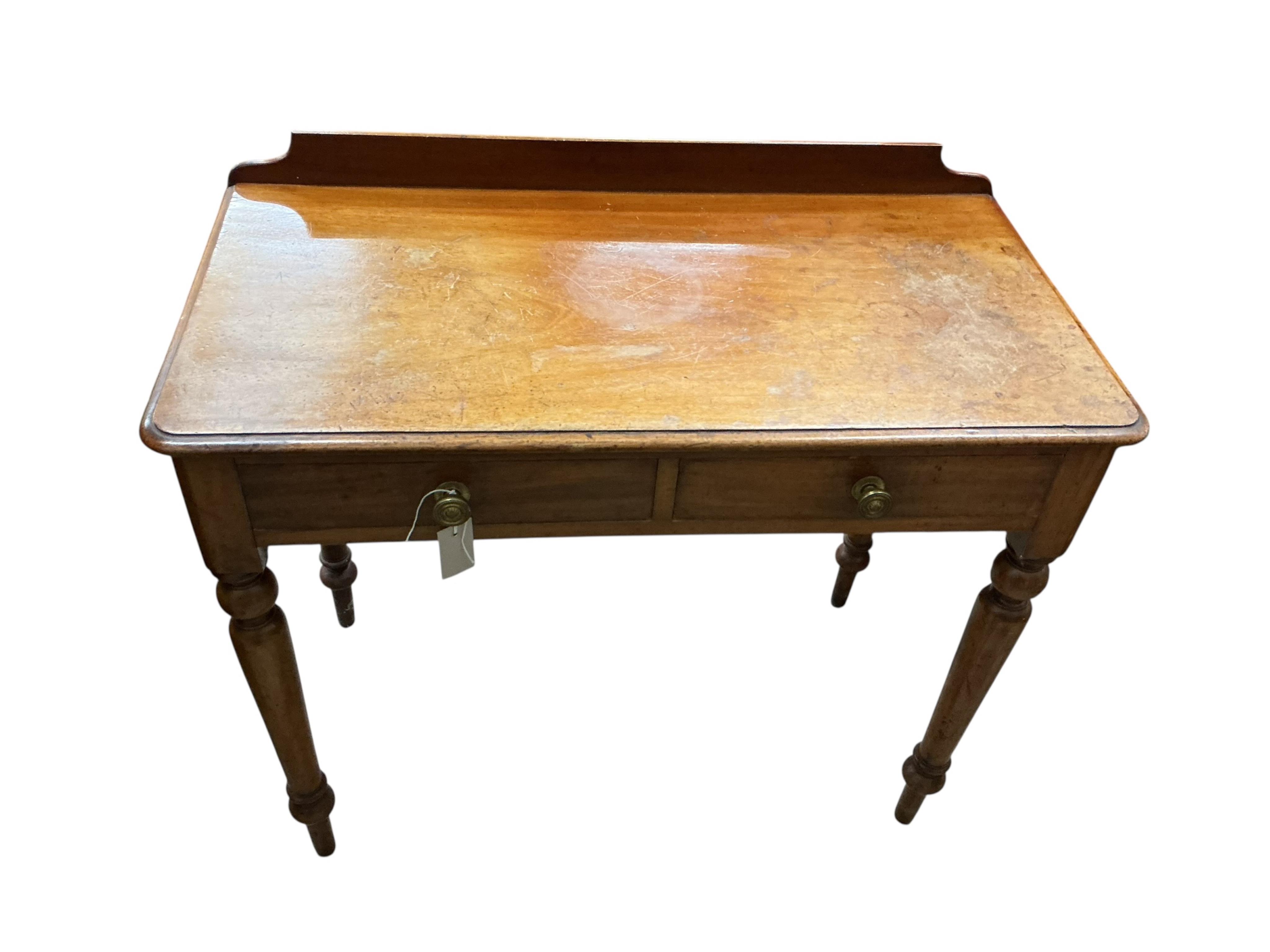 A Victorian mahogany two drawer side table, width 91cm, depth 46cm, height 80cm