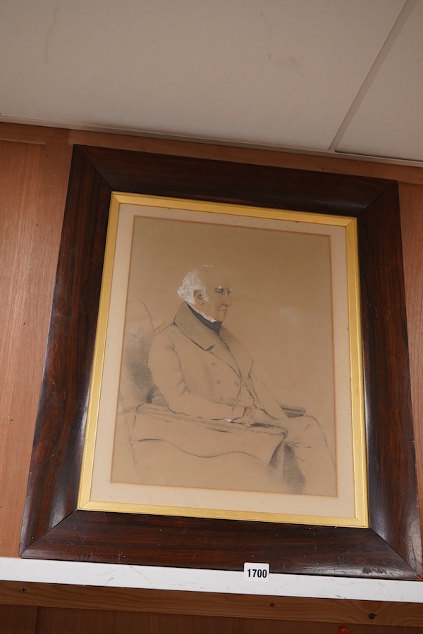 George Richmond RA (1809-1896), Portrait of Sir John Bayley, president of the MCC, label verso, charcoal heightened with white, housed in a rosewood frame, 45 x 34cm