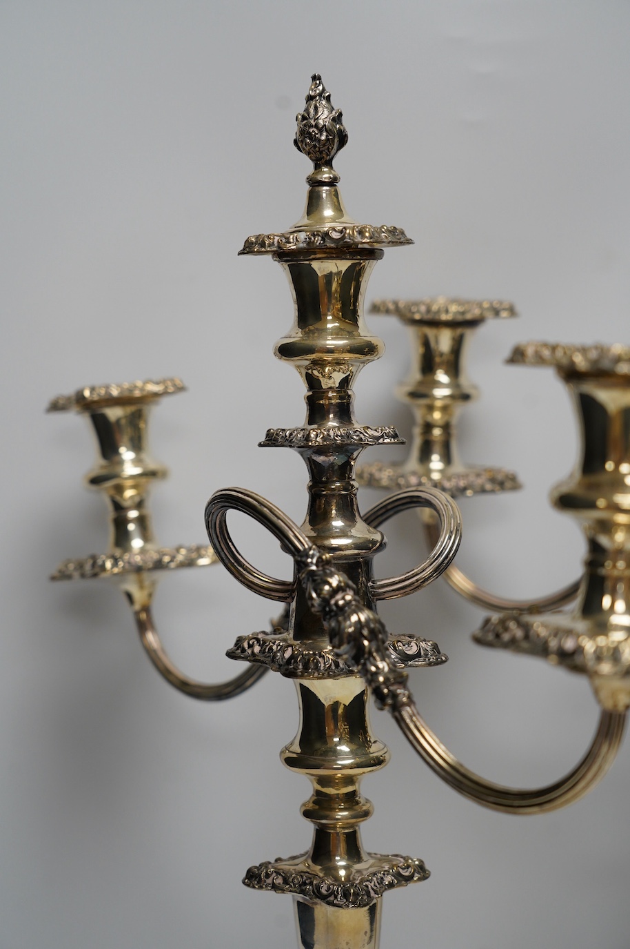 A pair of EPNS two branch, three light, candelabra, 52cm high.