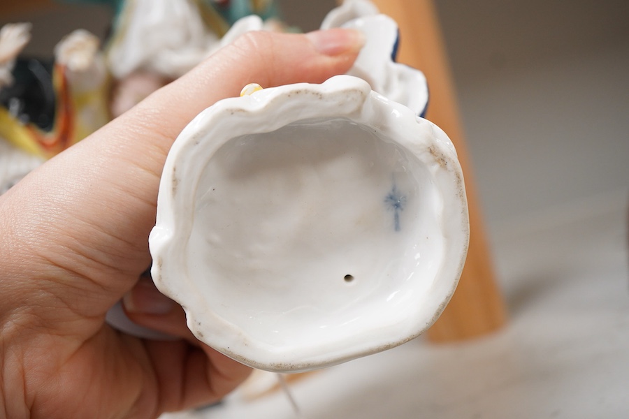 Lot 1471 , A pair of Volkstedt peasant dancers, and a Ludwigsburg style figure of a man beside tree-stump, latter 27cm