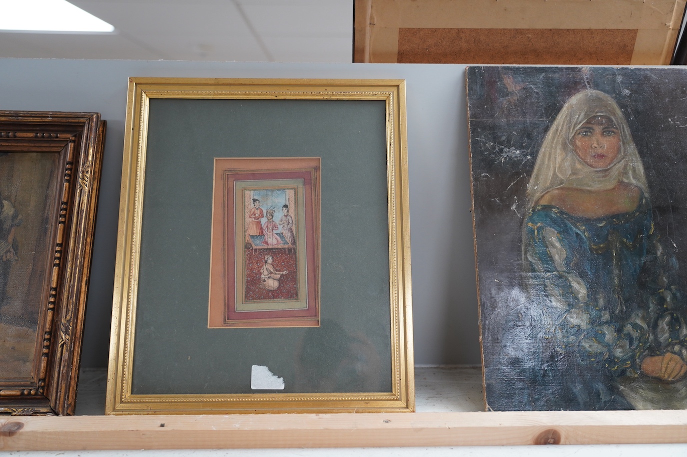 Lot 1724 , 19th century Indian School in Moghul style, watercolour on card, Nobleman and attendants, 11 x 5cm, overall visible sheet 17 x 10.5cm