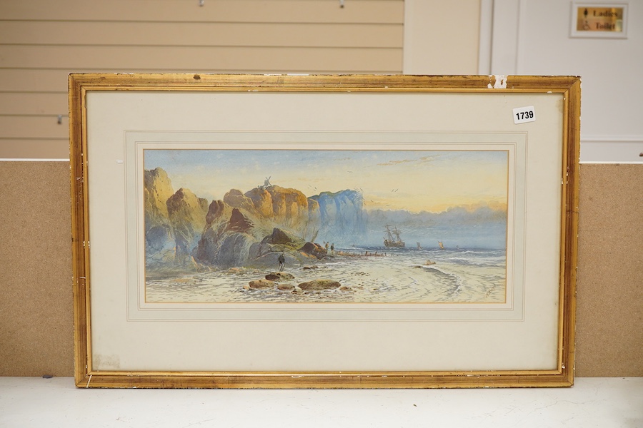 Lot 1739 , Edwin Earp (1851-1945), rocky coastal view with ships, signed, watercolour, 22 x 52cm