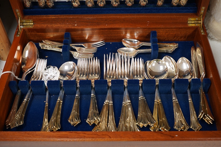Lot 1491 , A pair of silver plated canteens of cutlery, each surmounted with horse head plaques to the lids