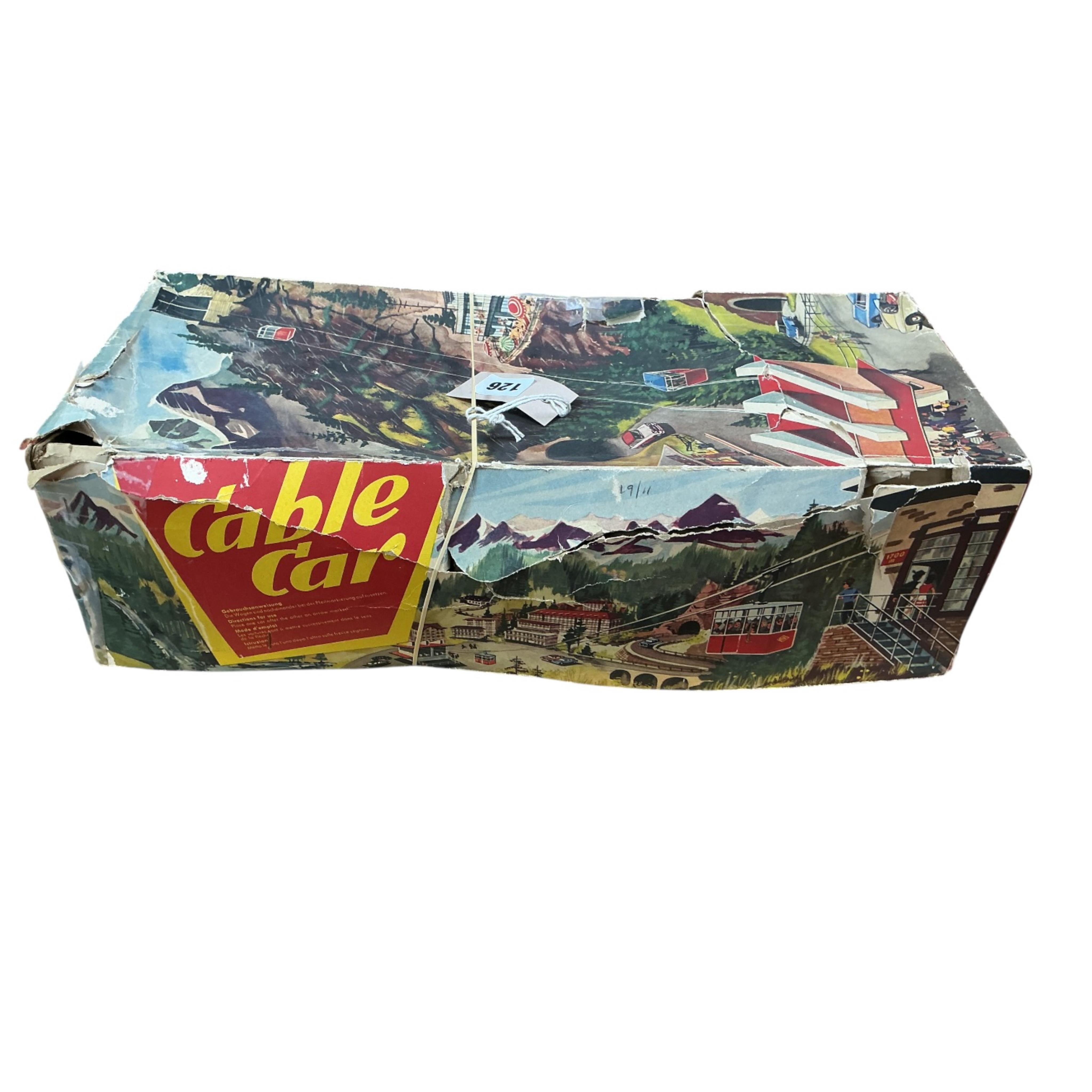 Lot 126 , A mid-20th century boxed Marks Technofix, Germany Cable Car clockwork tinplate toy, box a.f.
