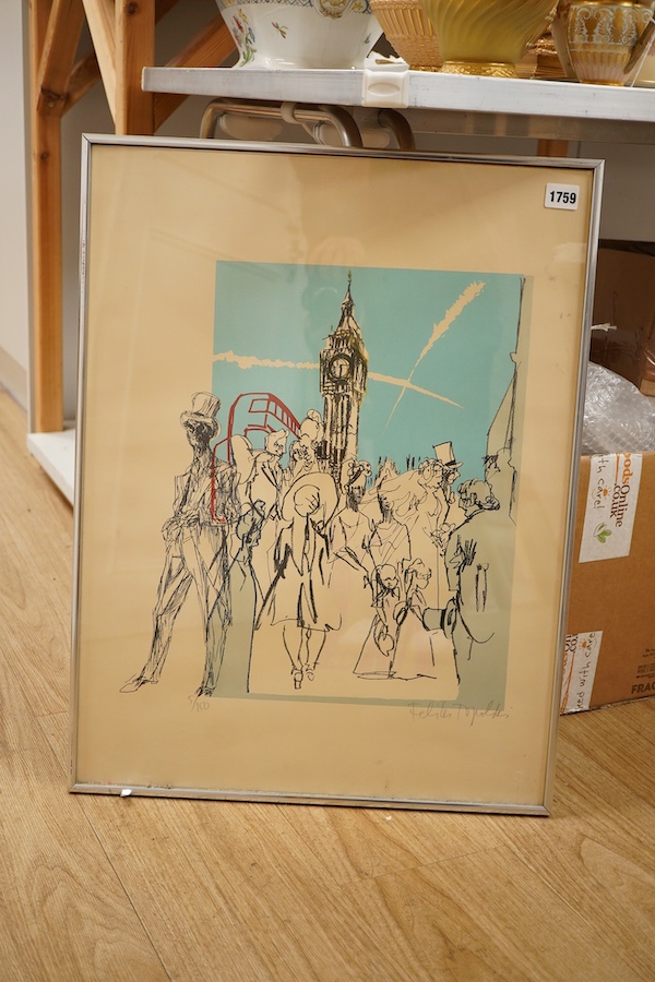 Feliks Topolski (1907-1989), ‘Westminster’, signed in pencil, limited edition 5/100, colour lithograph, 62 x 47cm