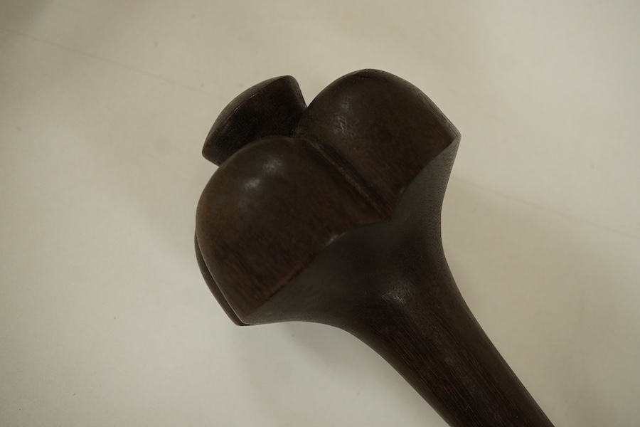 Lot 506 , A Solomon Islands hardwood throwing club, with woven bark covering to the handle, 38cm in length