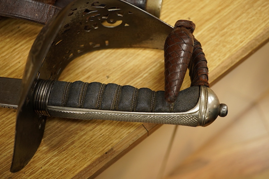 A George V 1914 Field Service sword by Wilkinson with leather covered steel scabbard, frog and bullion knot