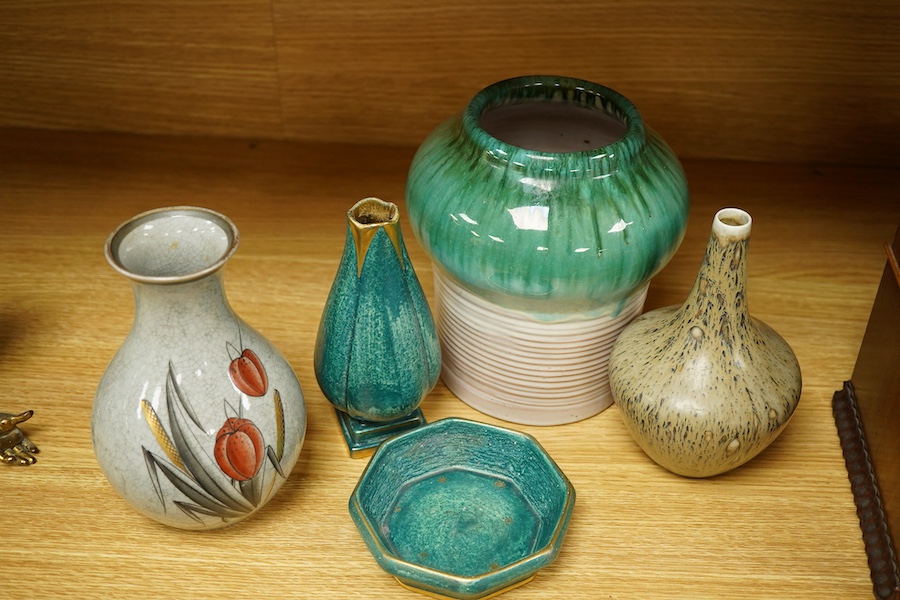 A small quantity of Art Deco and later ceramics, some Swedish to include a Rorstrand vase, Howards vase and a Gustavsberg vase and dish, largest 18cm high