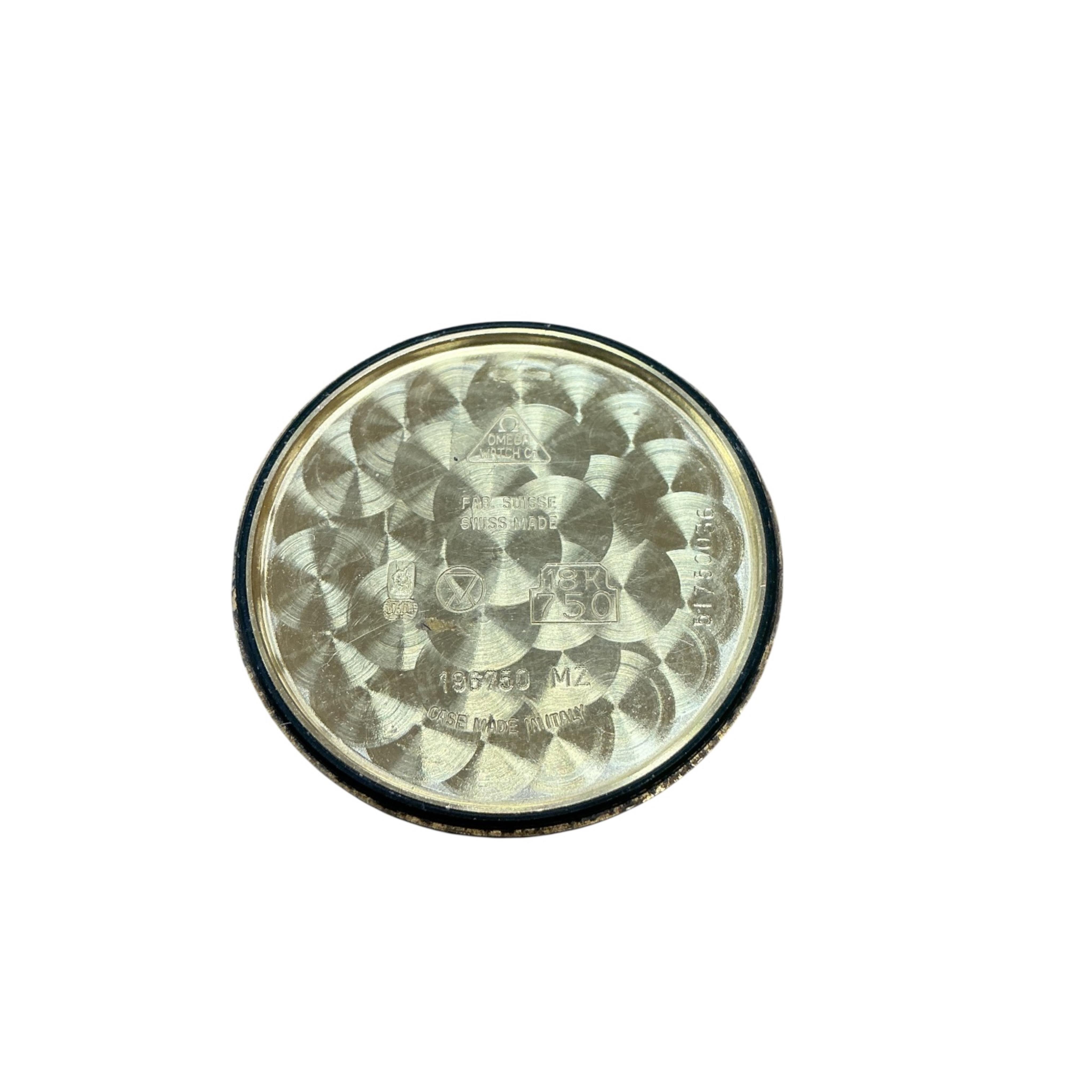 Lot 1901 , A gentleman's 1980's 18k Omega quartz wrist watch, with baton numerals and date aperture, movement c.1430, case diameter 33mm, on an associated leather strap, with Omega box.