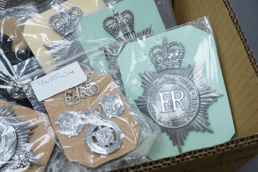 Yorkshire interest; a collection of police badges (helmet & cap), (qty).