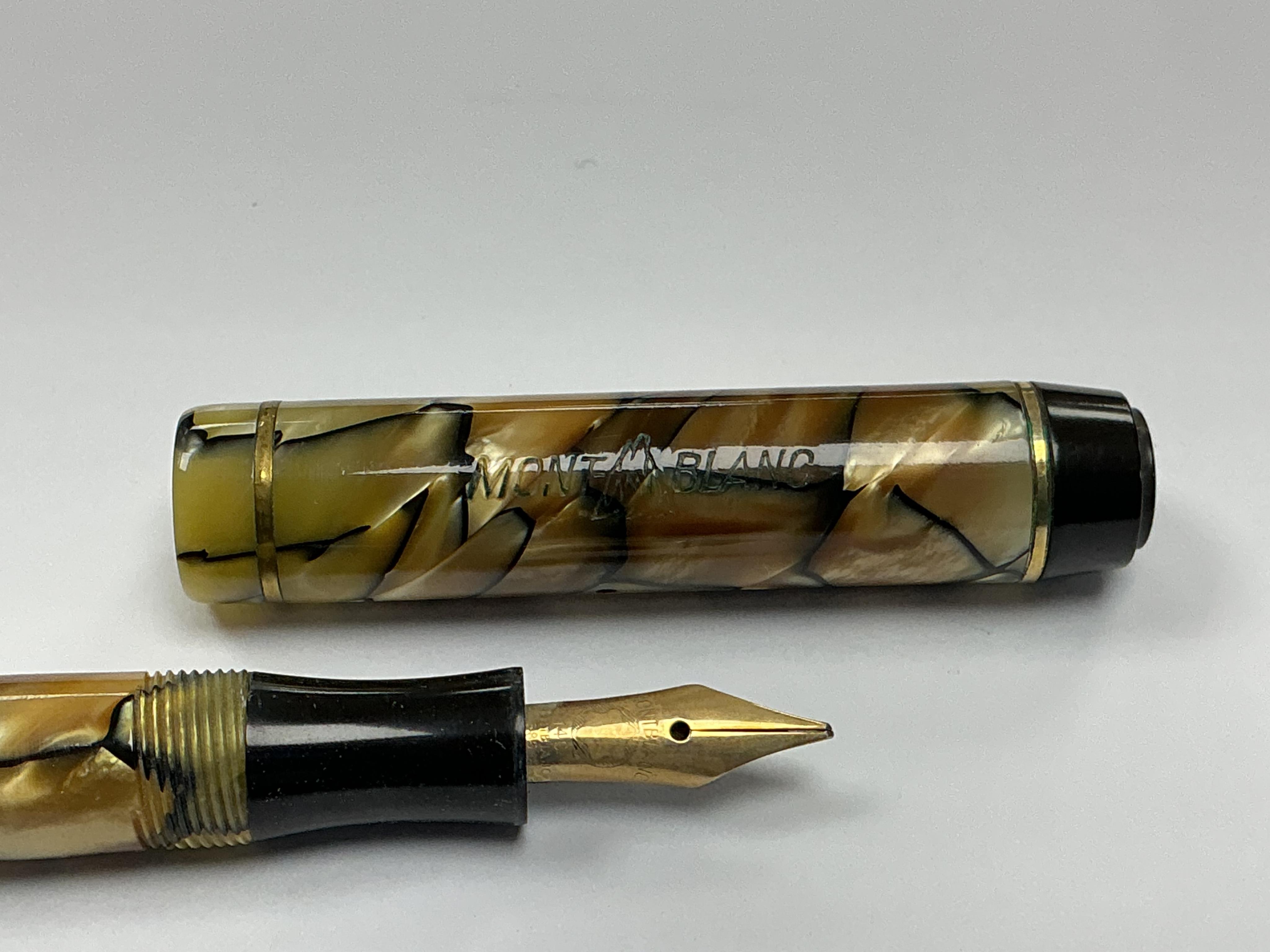 Lot 61 , A Montblanc black and pearl fountain pen, No.302 fitted with broad oblique nib (OBB) button filler