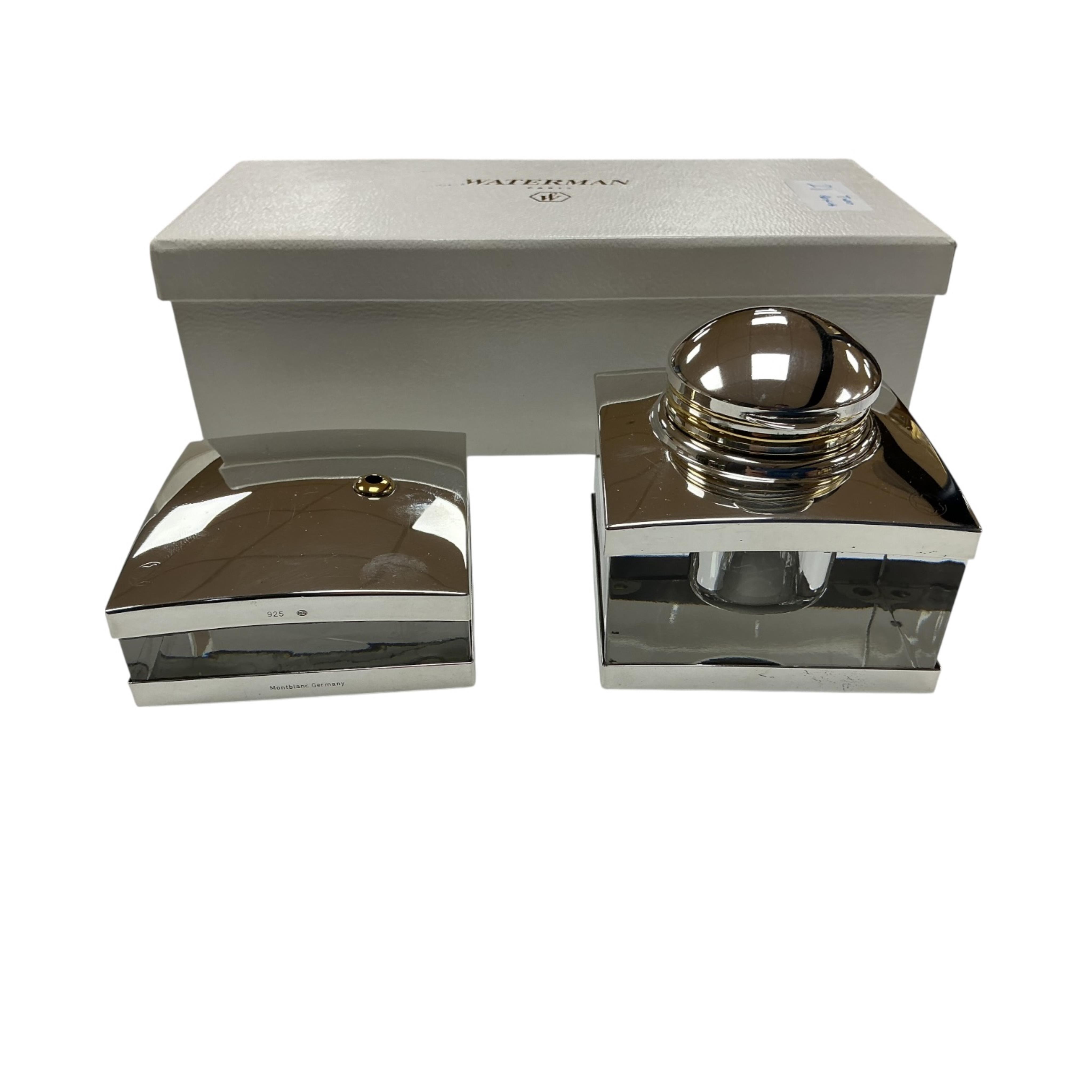 Lot 53 , A rare Montblanc Meisterstuck Sterling silver inkwell, blotter and pen holder in near perfect condition without any dings, dents or personal engravings - Solitaire Range