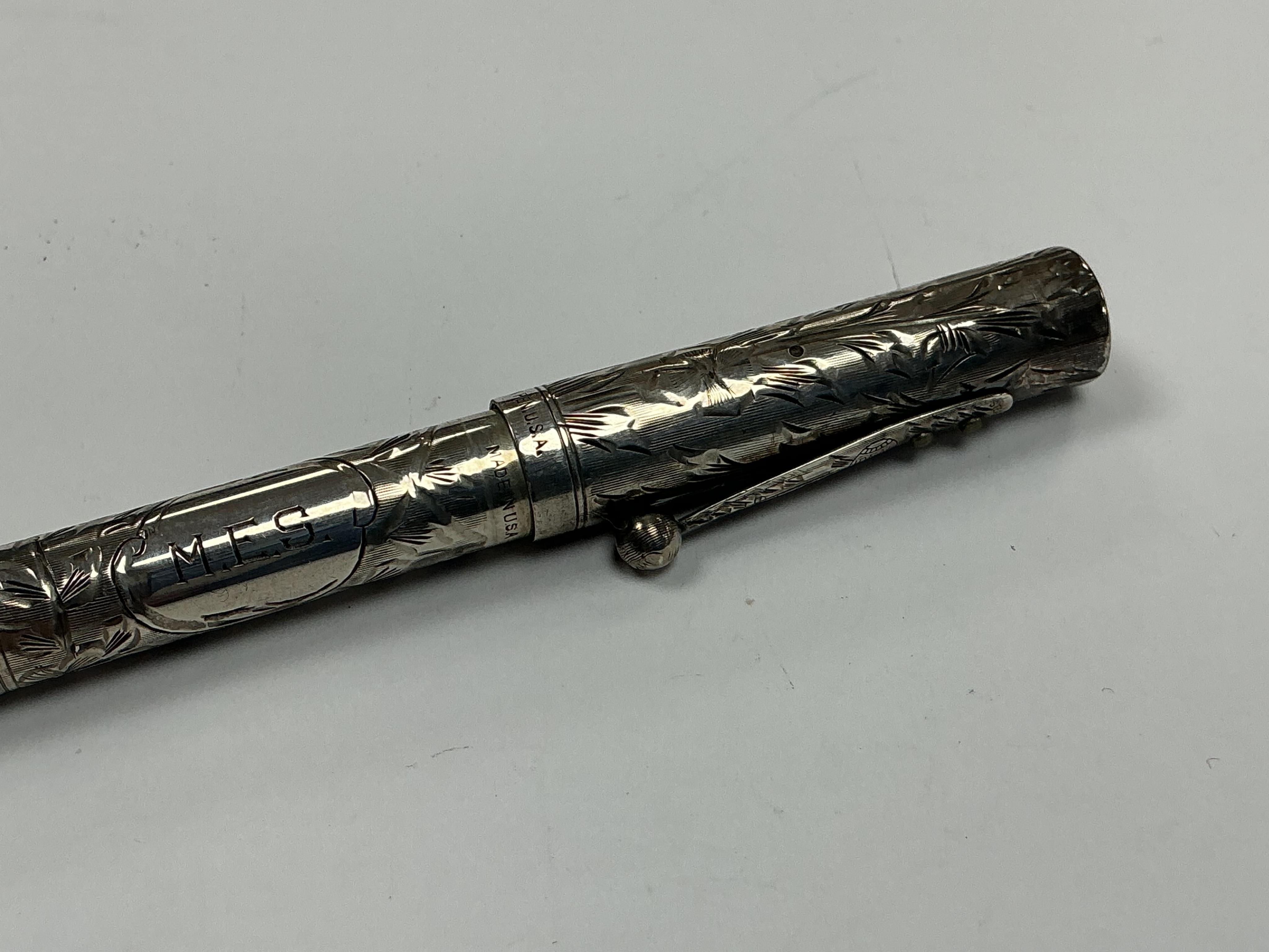 Lot 85 , A Waterman Sterling silver 452.5V pansy panel fountain pen fitted with Waterman 14c. fine nib
