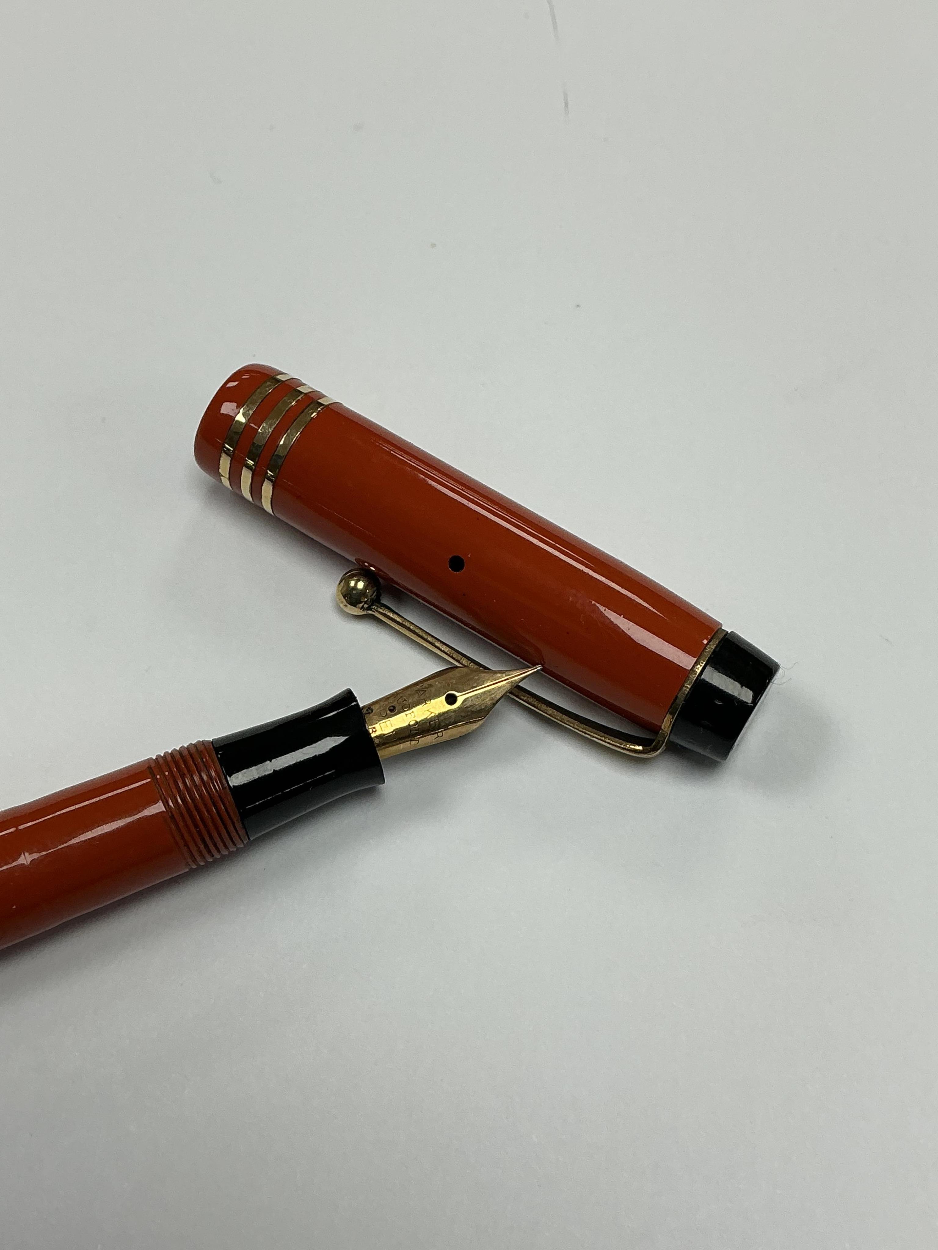 Lot 67 , A Parker Duofold Juniorette with 'Olsen' barrel markings and 14ct. gold nib
