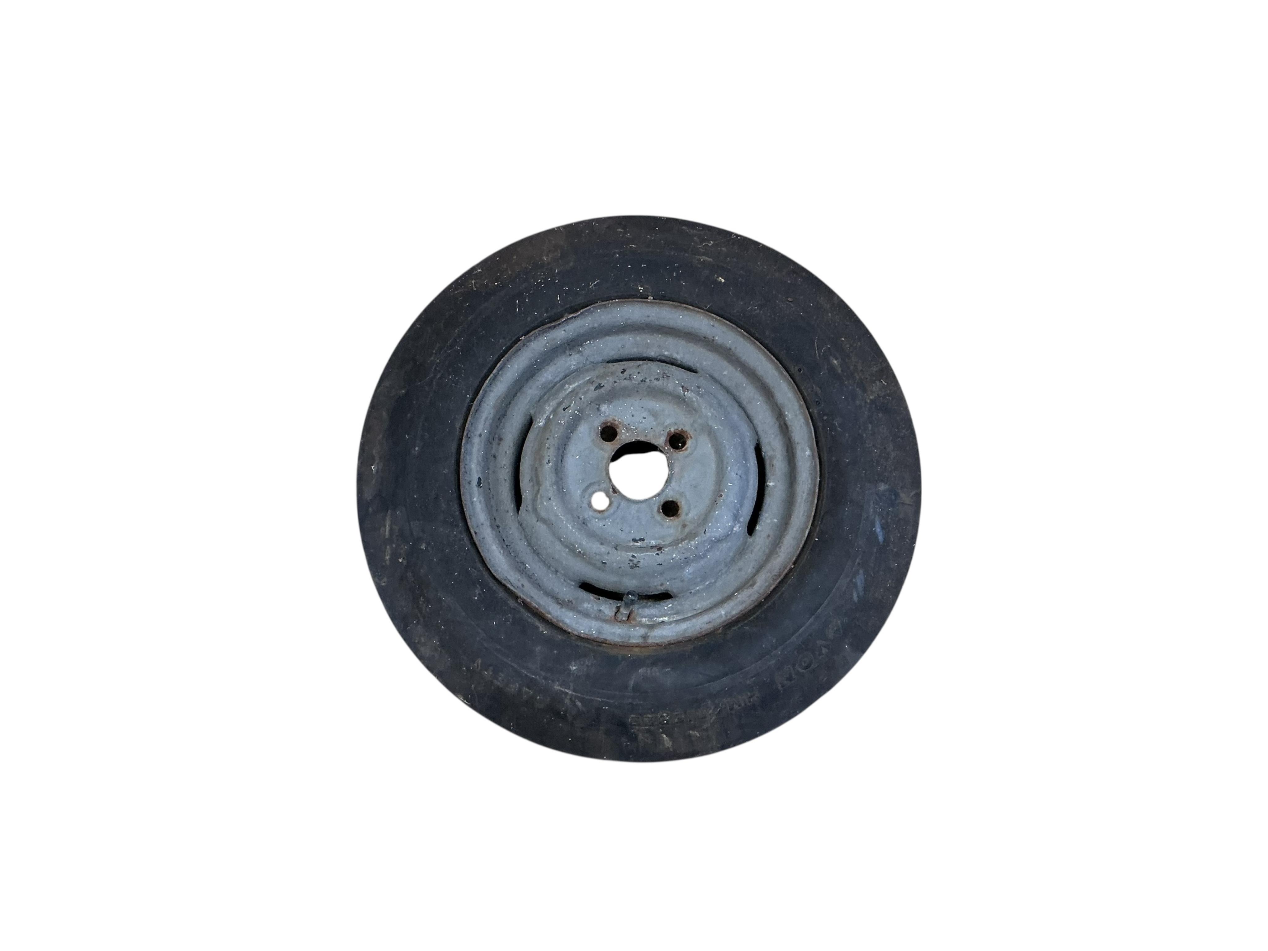 The tubular steel frame of a motorcycle sidecar for restoration, including the wheel, mud guard and drum brake assembly, etc.