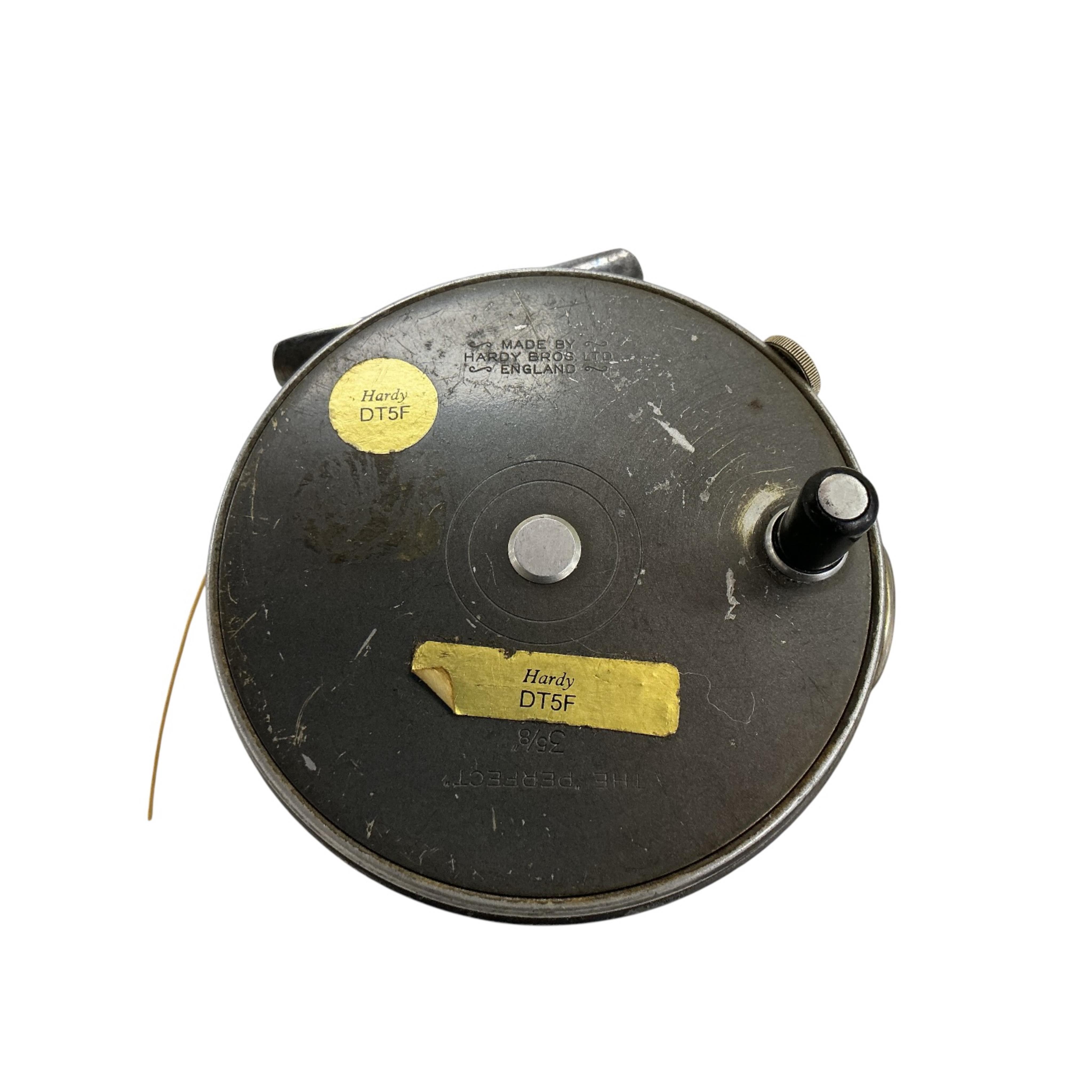 A Hardy 'The Perfect 3 5/8' trout fly reel- 9cm diameter and Hardy tin with fly fishing hooks