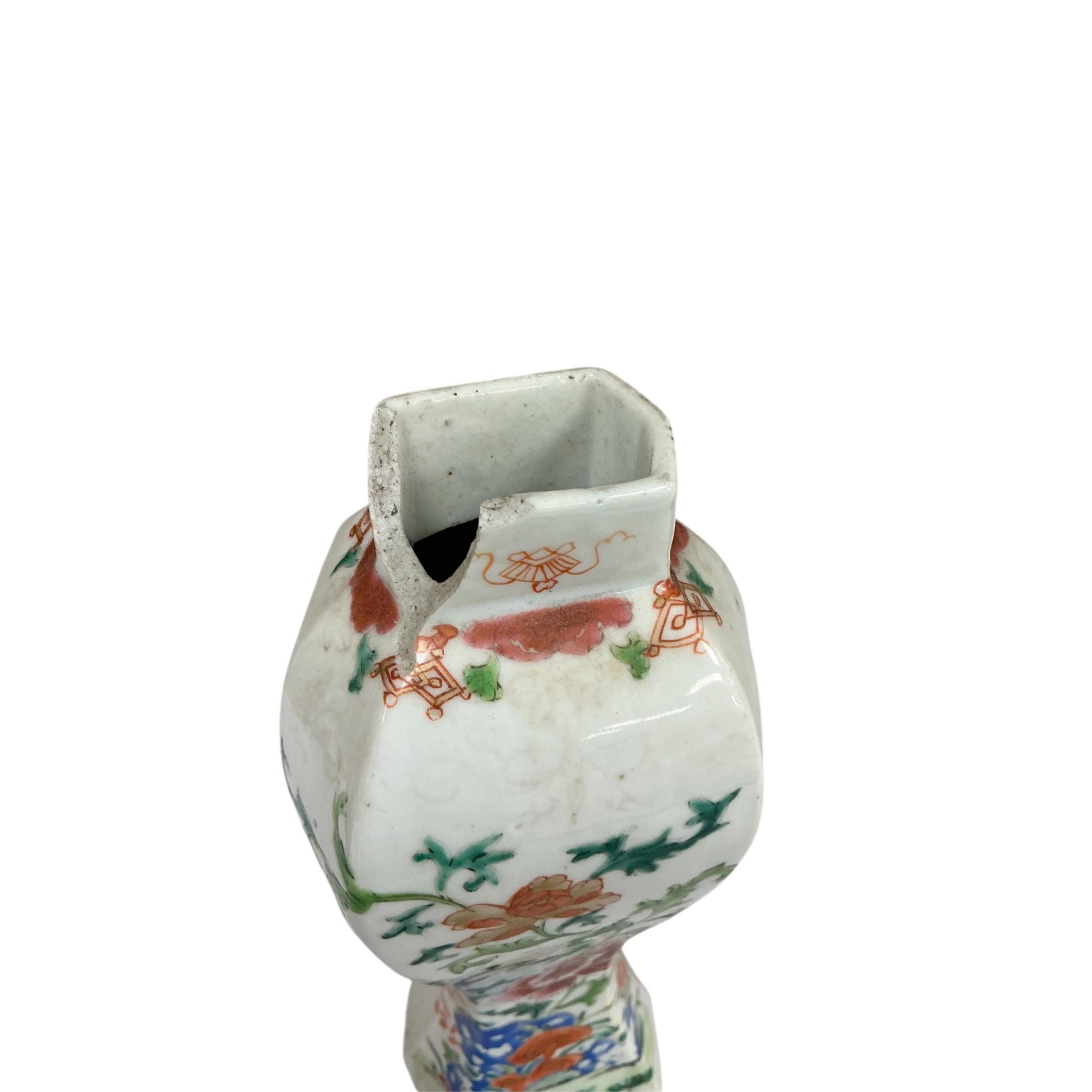 A pair of 18th century Chinese famille rose vases, 21cm high