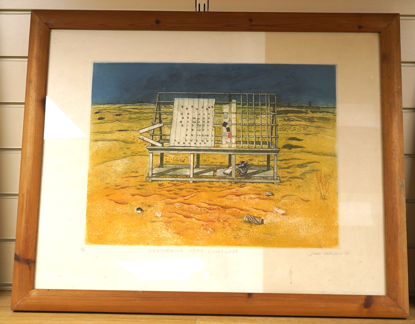 Joan Willraum (?), ‘Weathering Tests, Dungeness’, signed and dated ‘84, limited edition 11/50, etching with aquatint, 54 x 69cm
