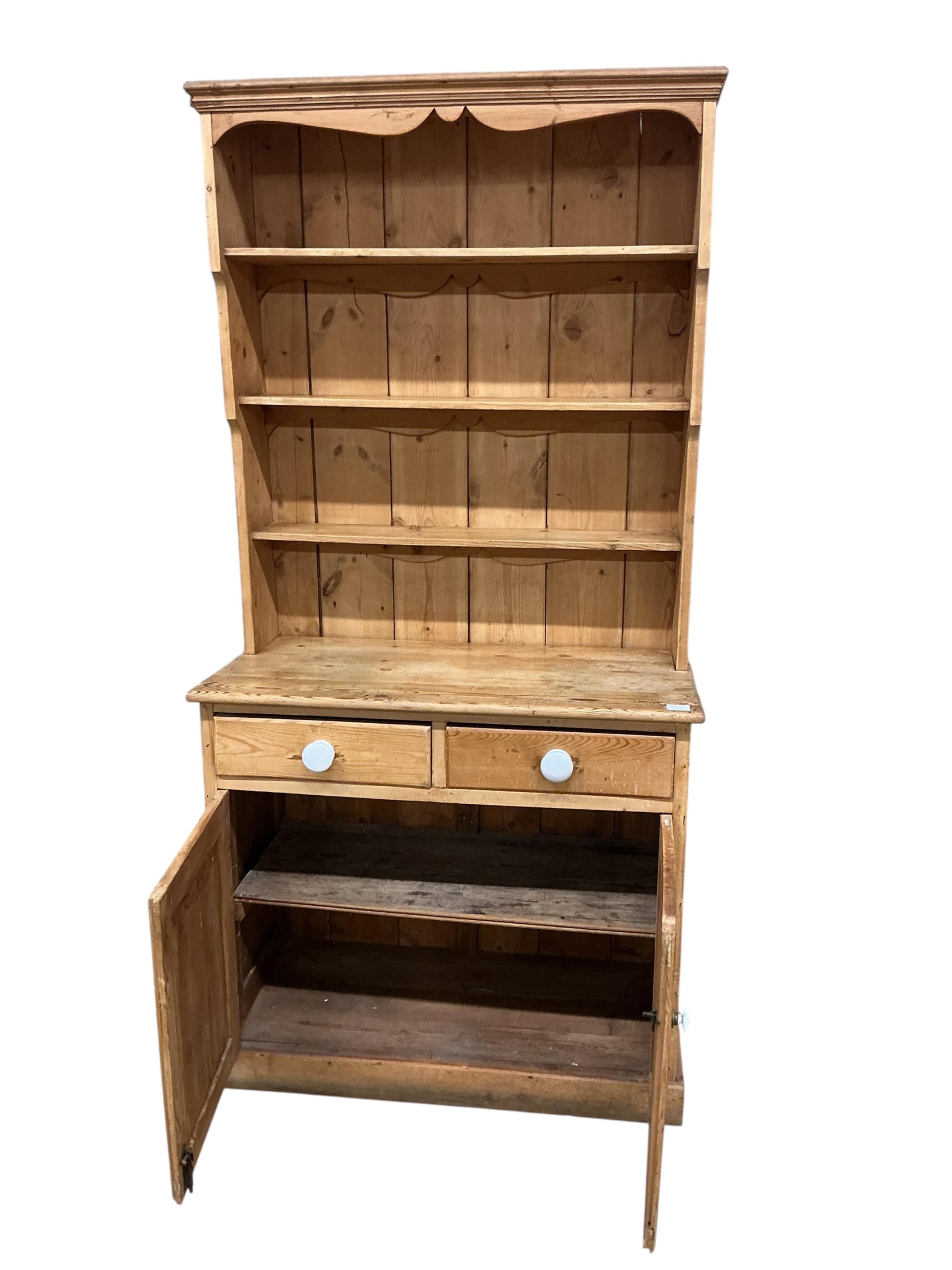 Lot 239 , A Victorian narrow pine kitchen dresser, width 95cm, depth 45cm, height 190cm