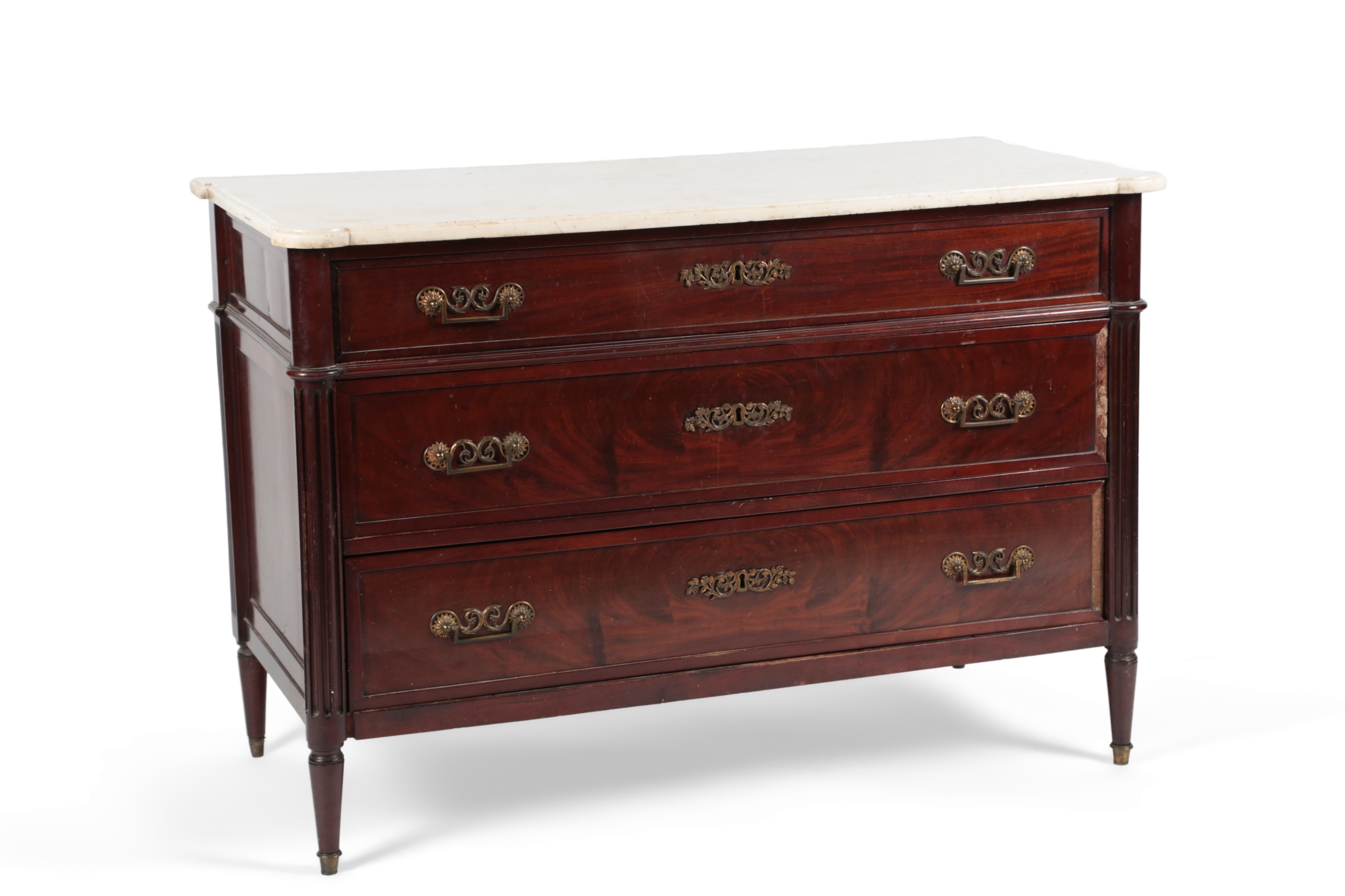 Lot 294 , A French Directoire white marble topped mahogany commode