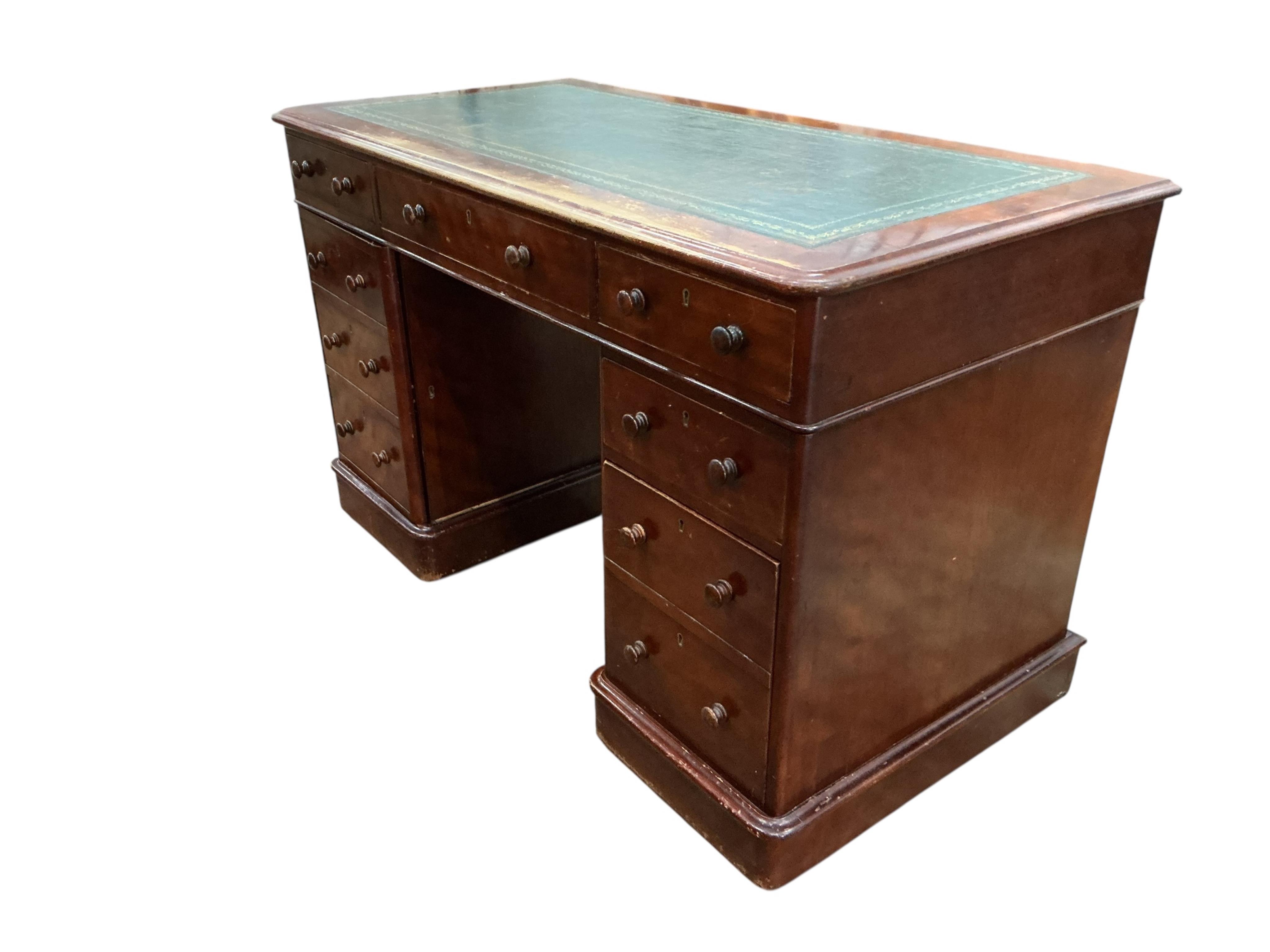 Lot 1084 , A Victorian mahogany pedestal desk, width 121cm, depth 60cm, height 75cm