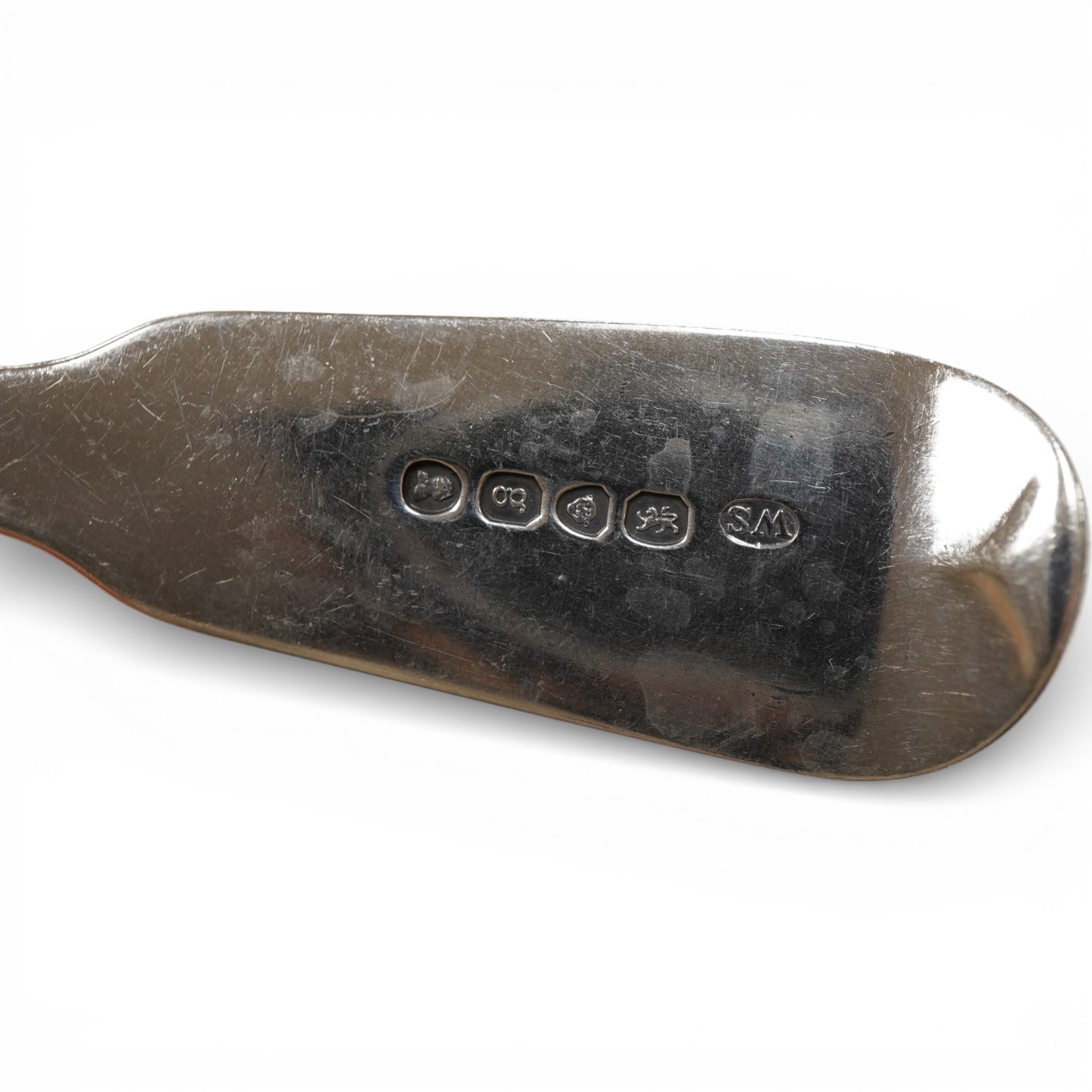 Lot 833 , A harlequin set of seven George III and later silver fiddle pattern table spoons, various dates and makers, 16.7oz.