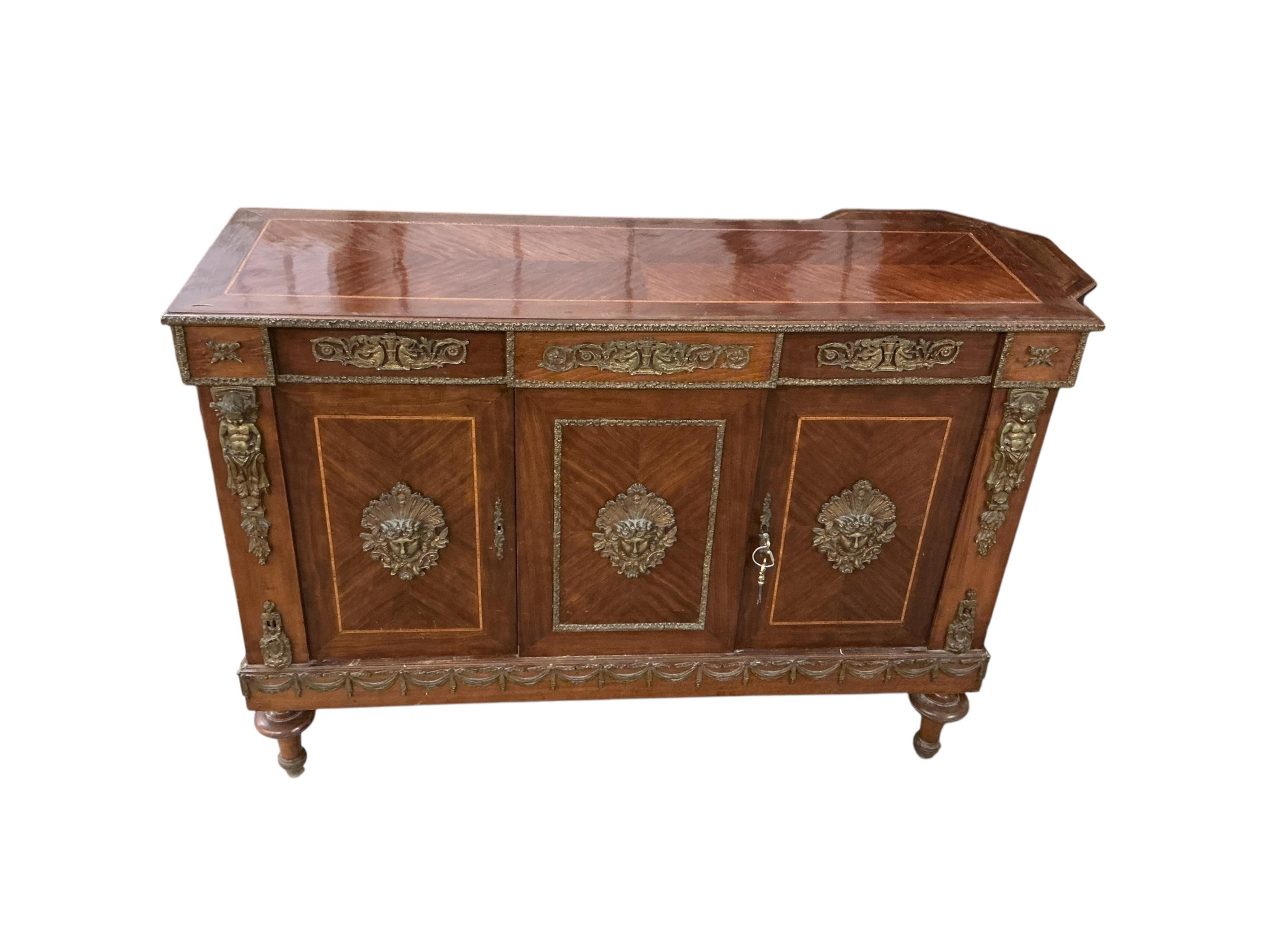 Lot 235 , A Louis XVI style gilt metal mounted kingwood side cabinet, width 125cm, depth 42cm, height 90cm