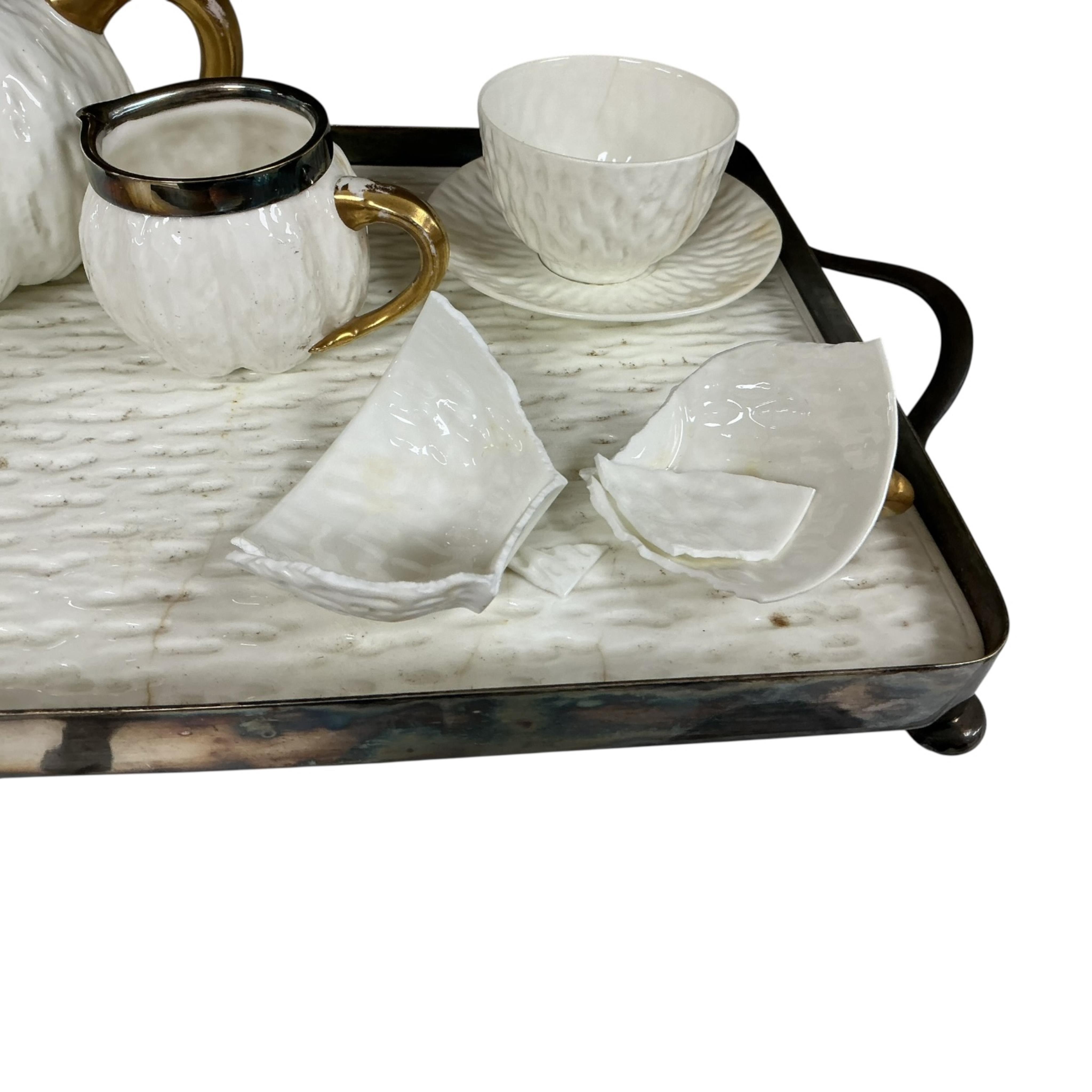 Lot 1297 , Dr Christopher Dresser (1834-1904), for Coalport, a téte a téte tea service with plated mounts, tray 41cm wide