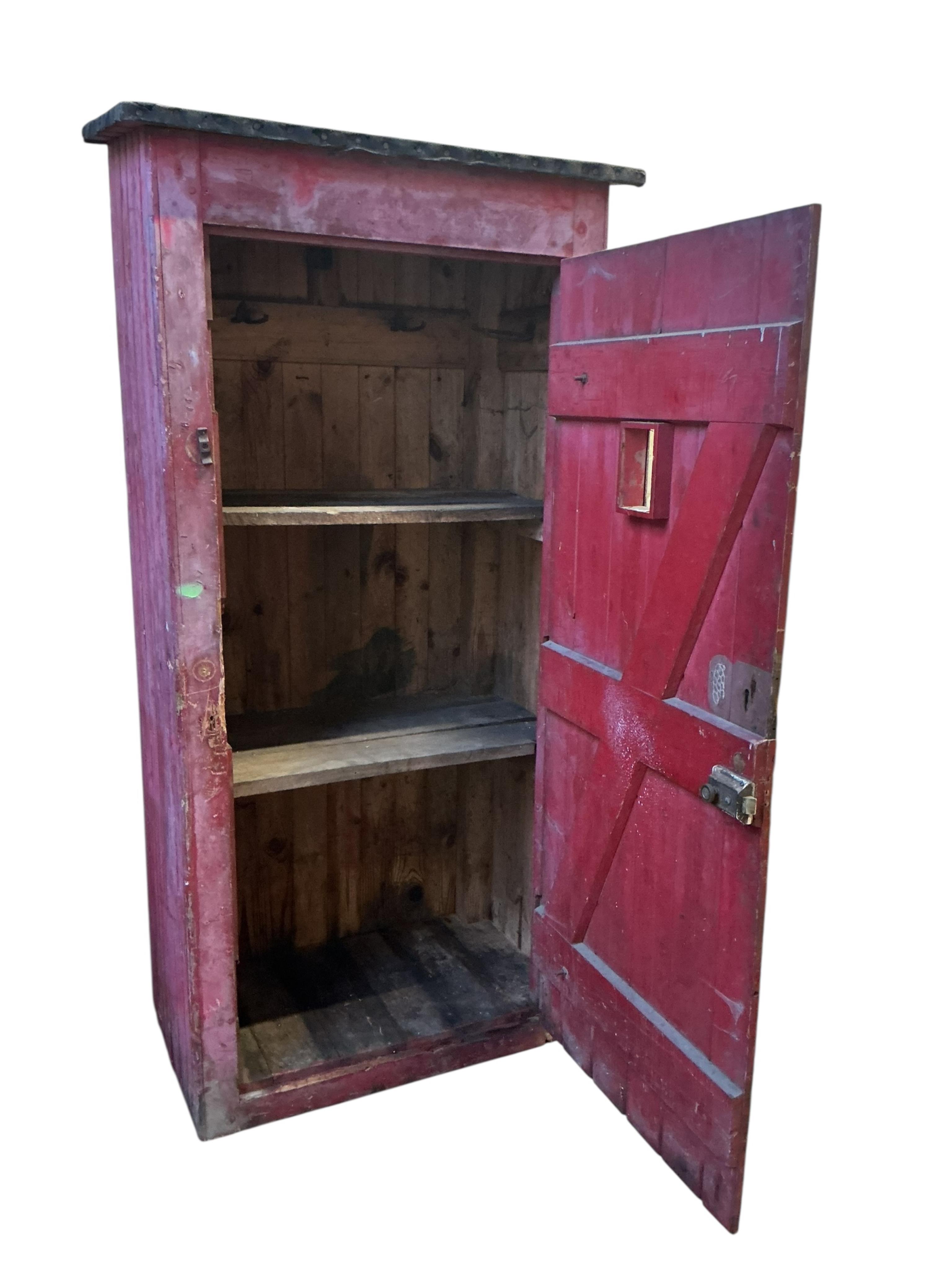 Lot 272 , A vintage painted pent roof cupboard, (possibly a fire apparatus cupboard), width 98cm, depth 58cm, height 200cm.