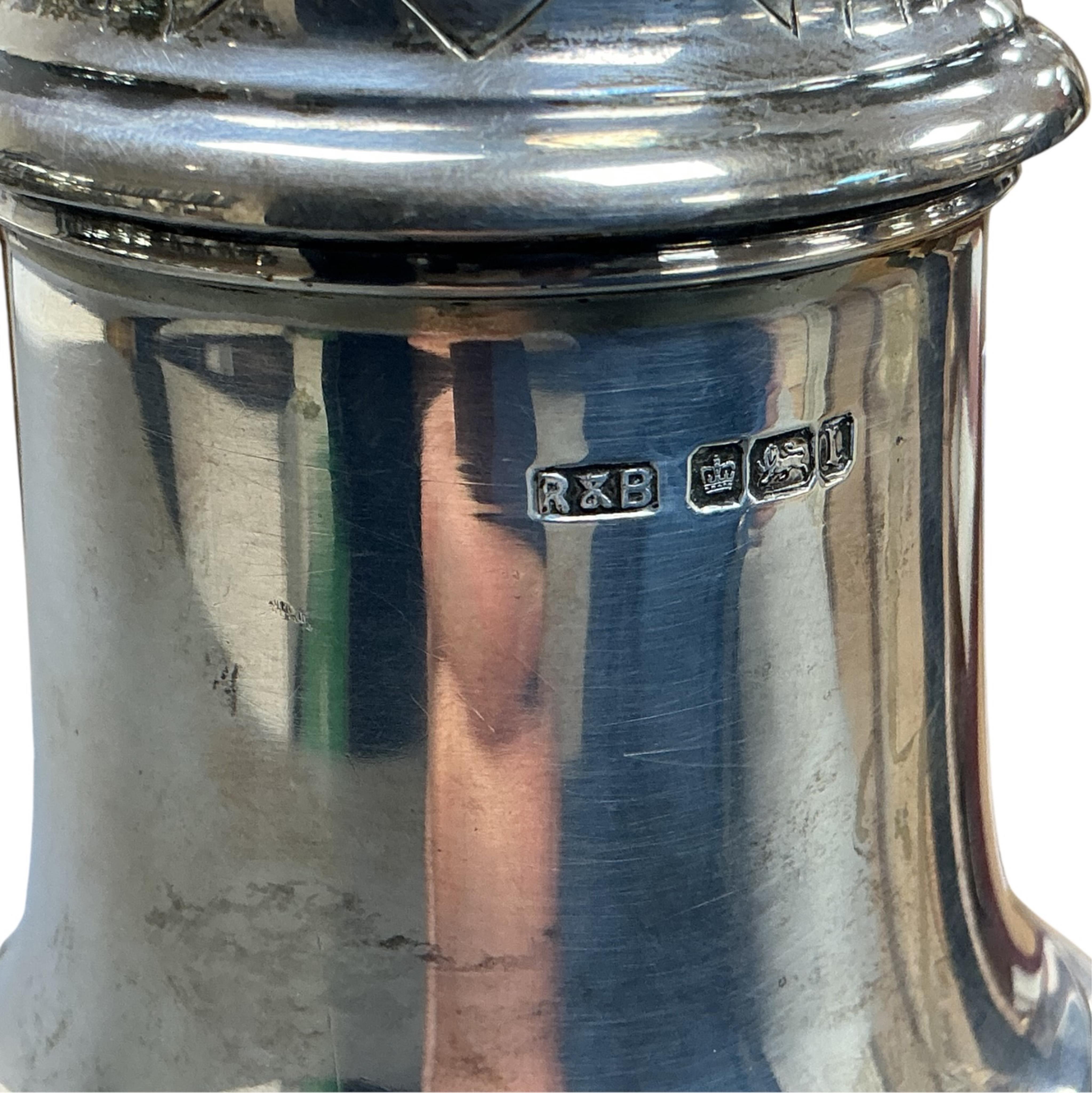 Lot 828 , An Edwardian large silver baluster sugar caster by Roberts & Belk, Sheffield, 1903, 23cm, 11oz.