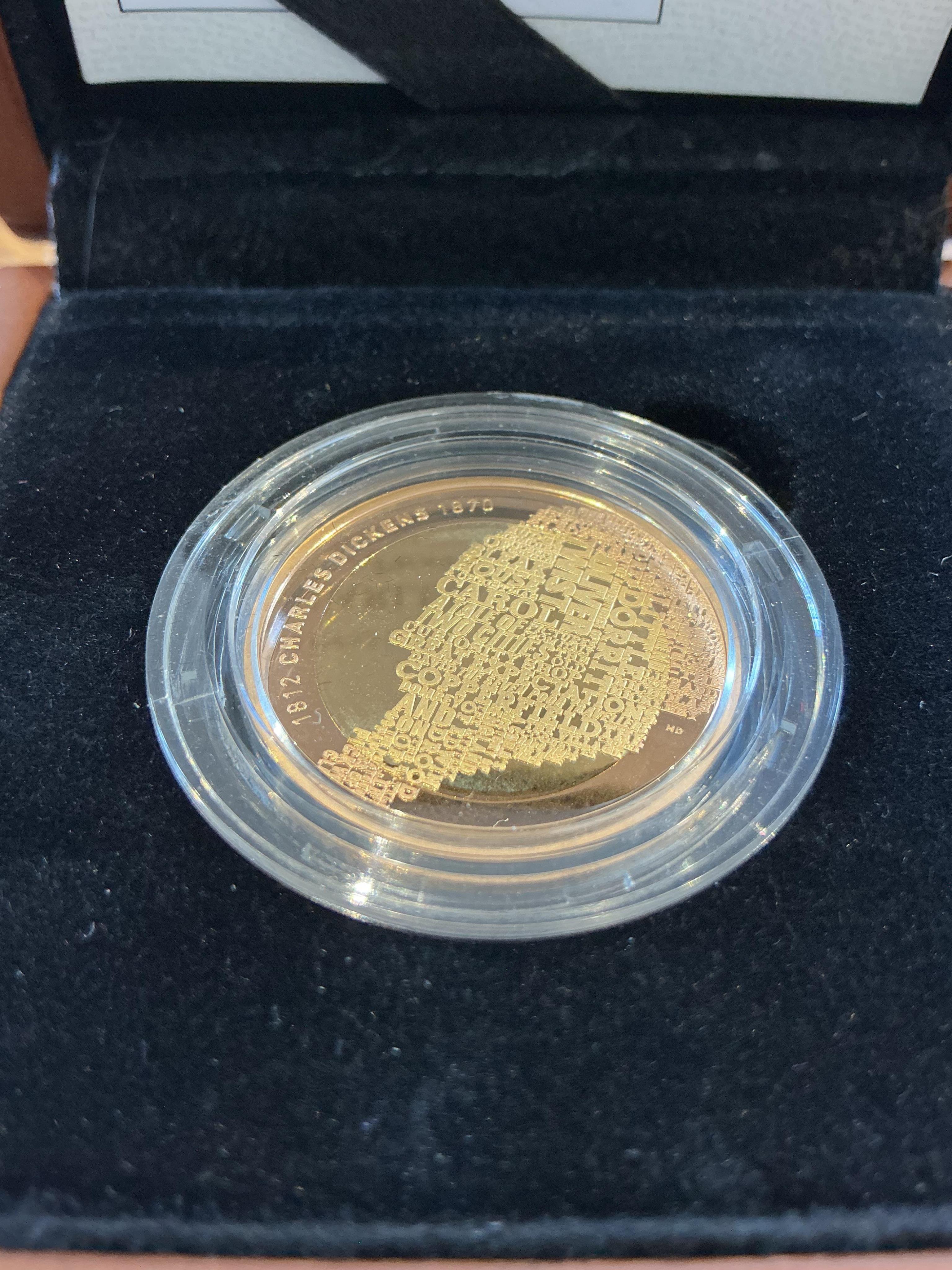 British gold coins, Elizabeth II, Royal Mint Charles Dickens £2 gold proof coin, limited edition of 850, in case of issue with certificate