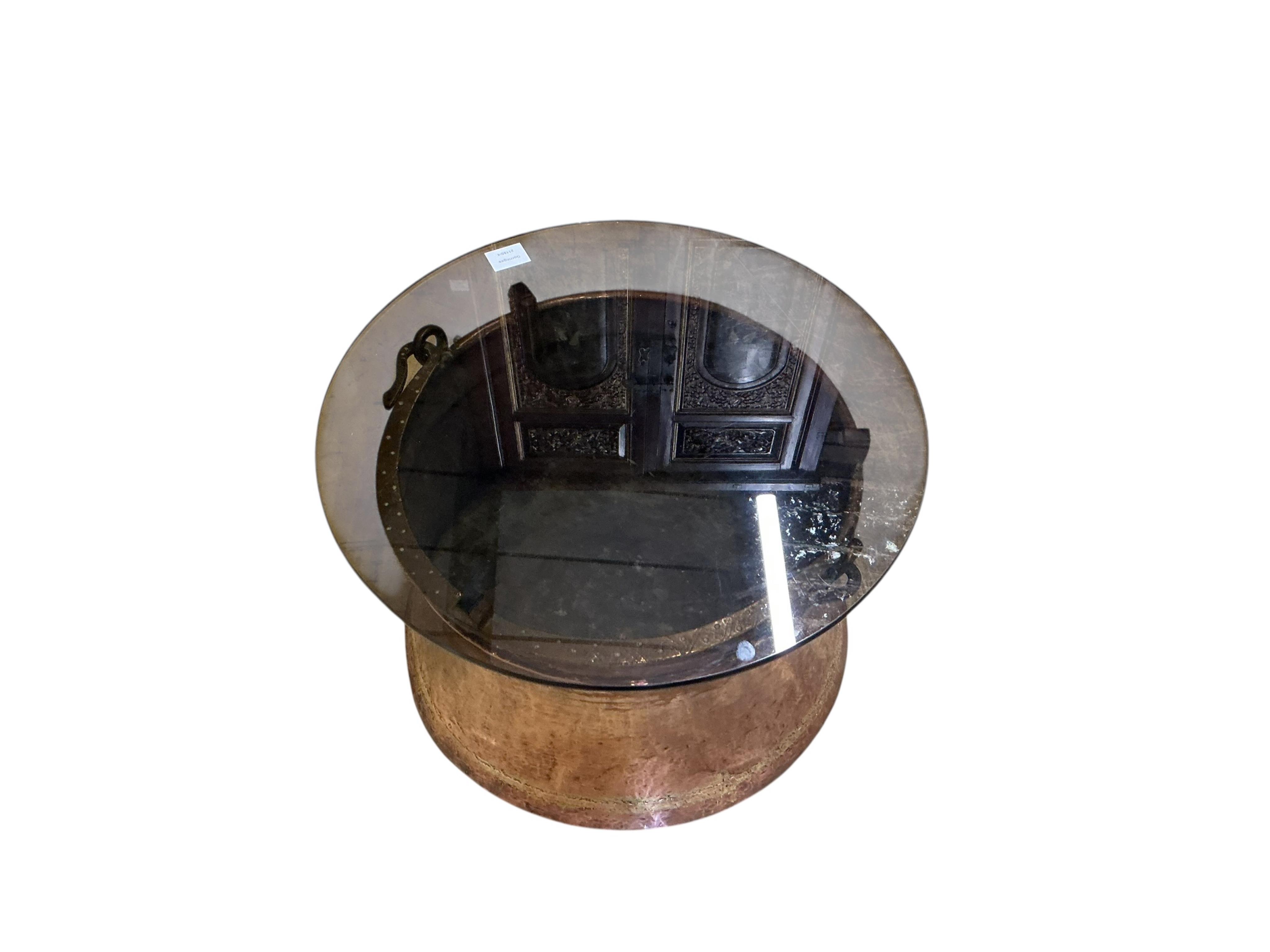 Lot 1286 , A copper pail with a later circular smoked glass top, diameter 56cm, height 38cm