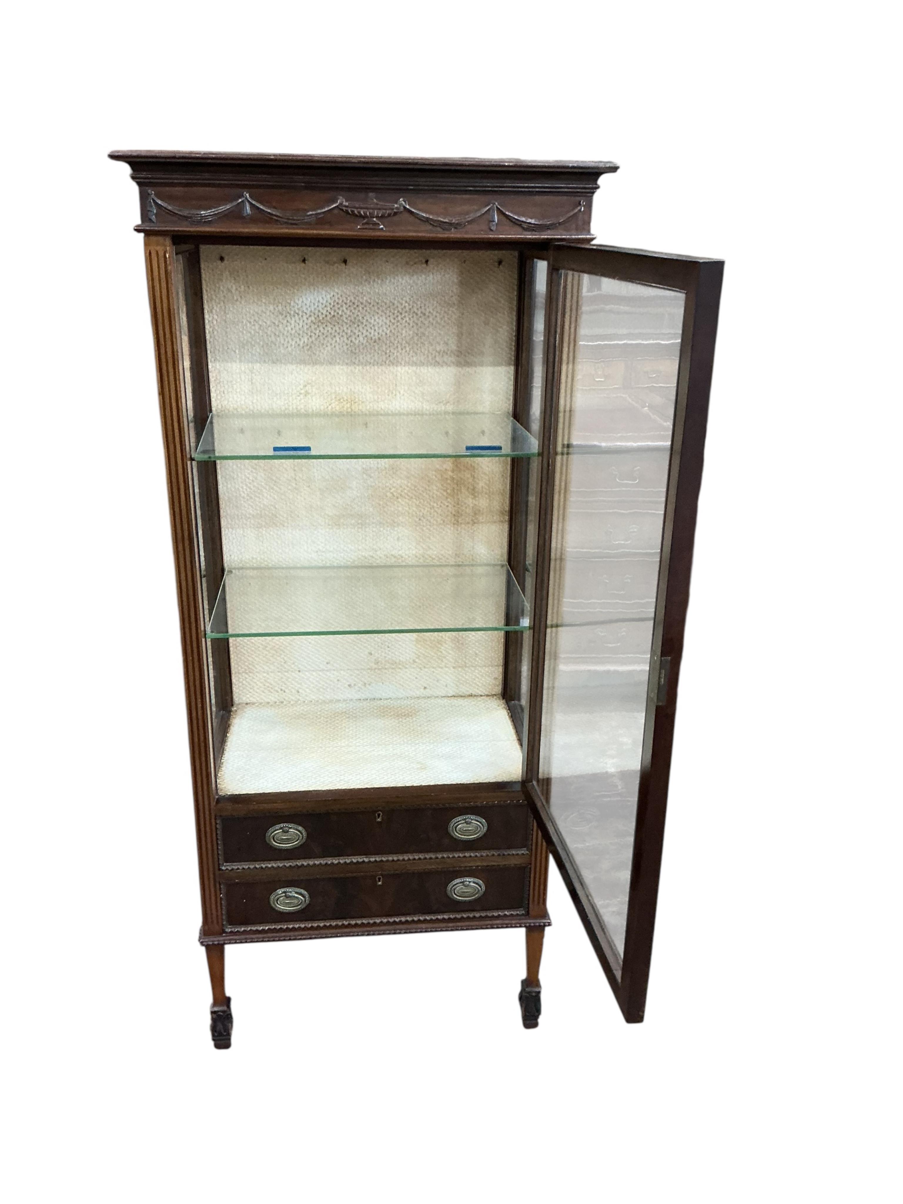 An Edwardian mahogany display cabinet, width 62cm, depth 38cm, height 139cm