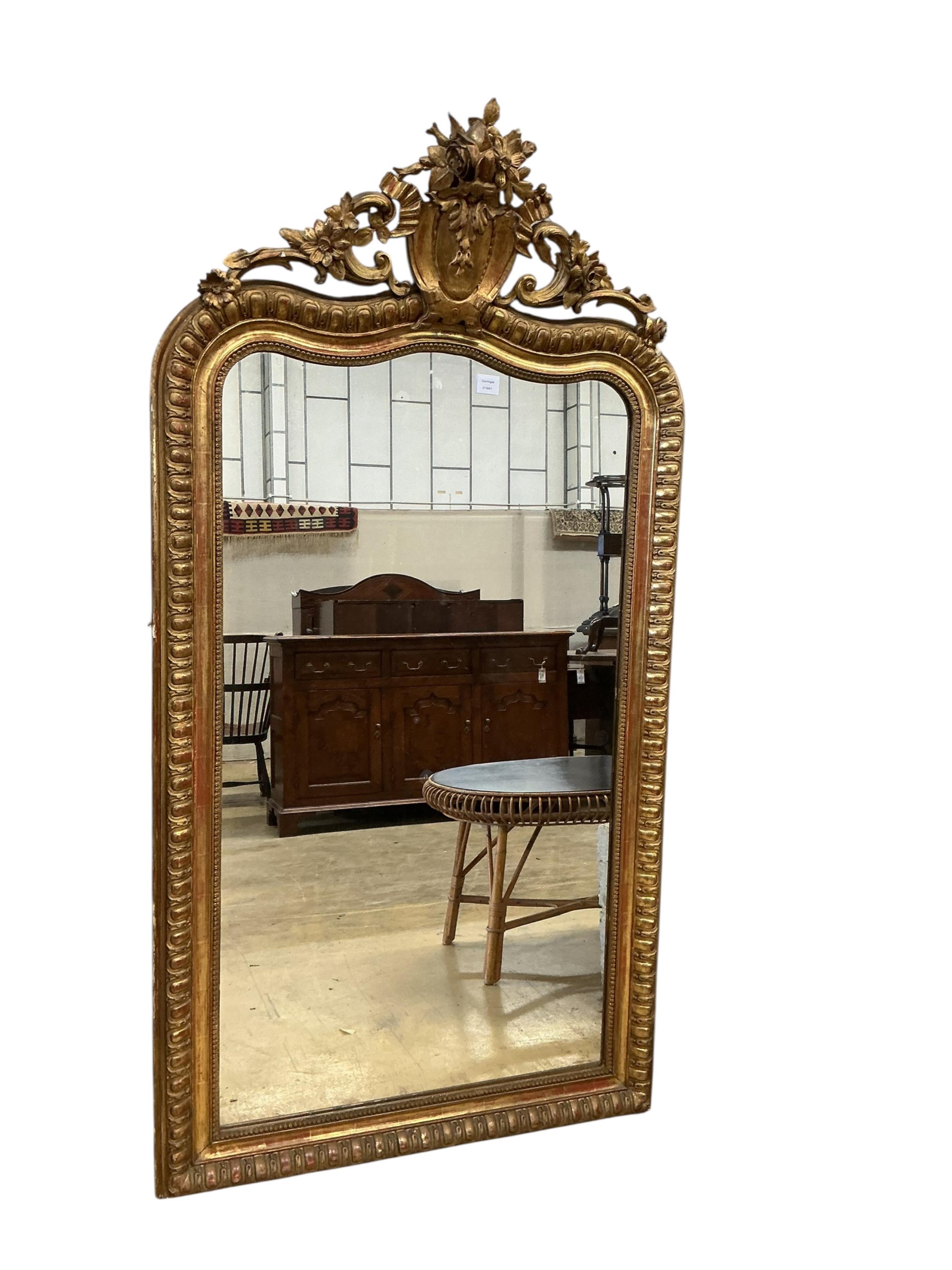 Lot 1260 , A 19th century French giltwood and composition pier glass, with floral cartouche pediment, width 95cm, height 183cm