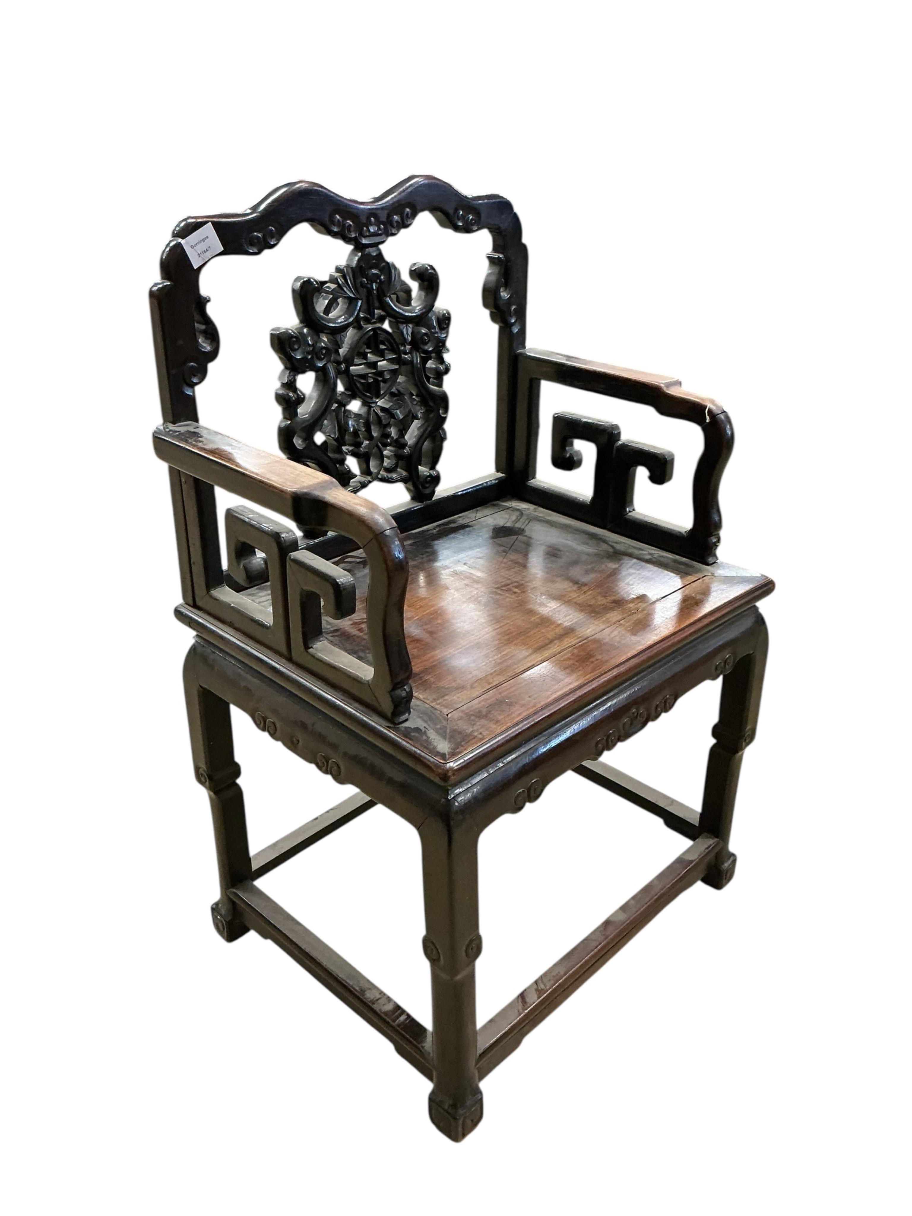 A 19th century Chinese hongmu side chair, width 65cm, depth 48cm, height 98cm