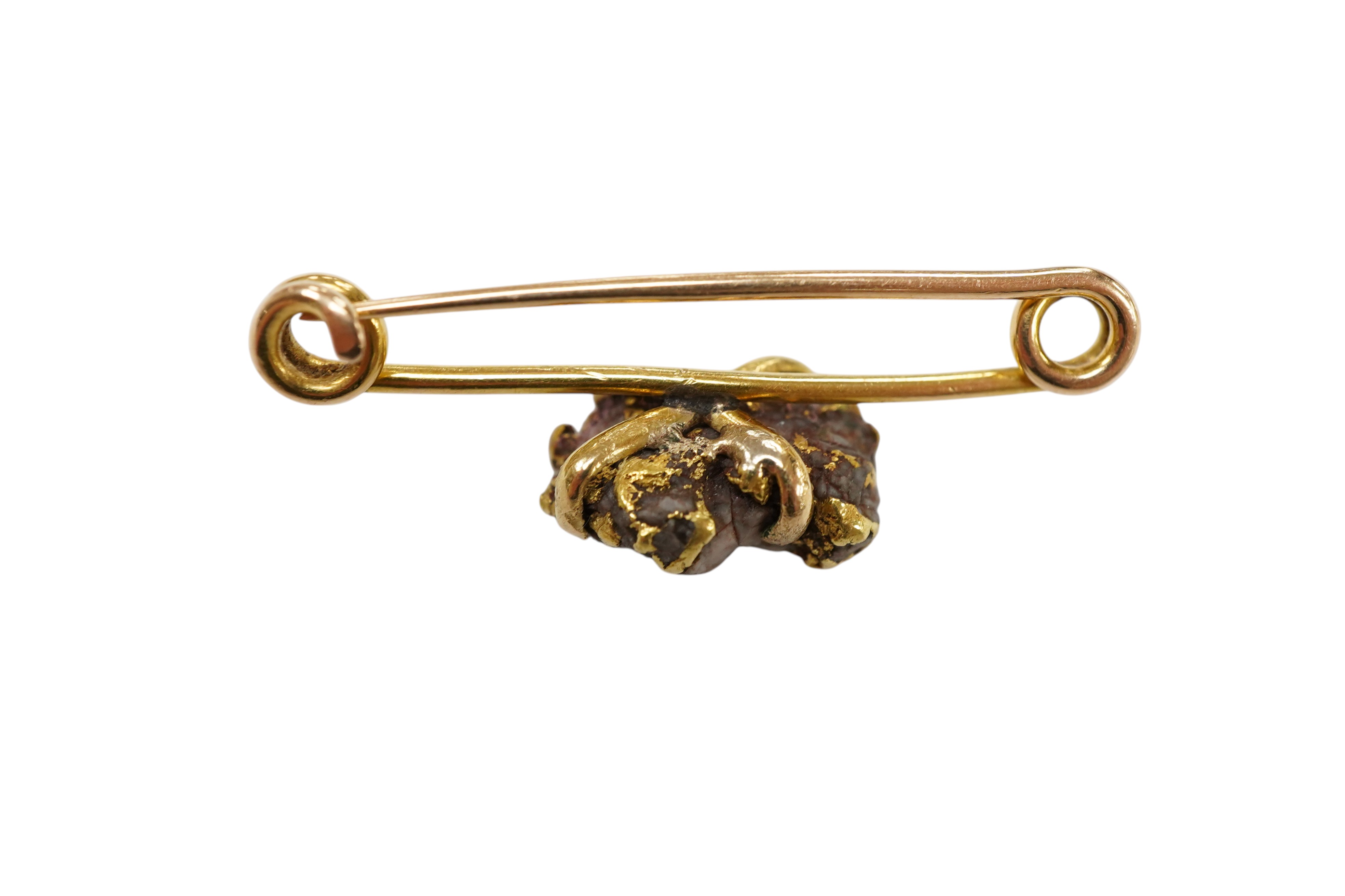 Lot 1909 , A gold nugget mounted bar brooch, 38mm, gross weight 7 grams.