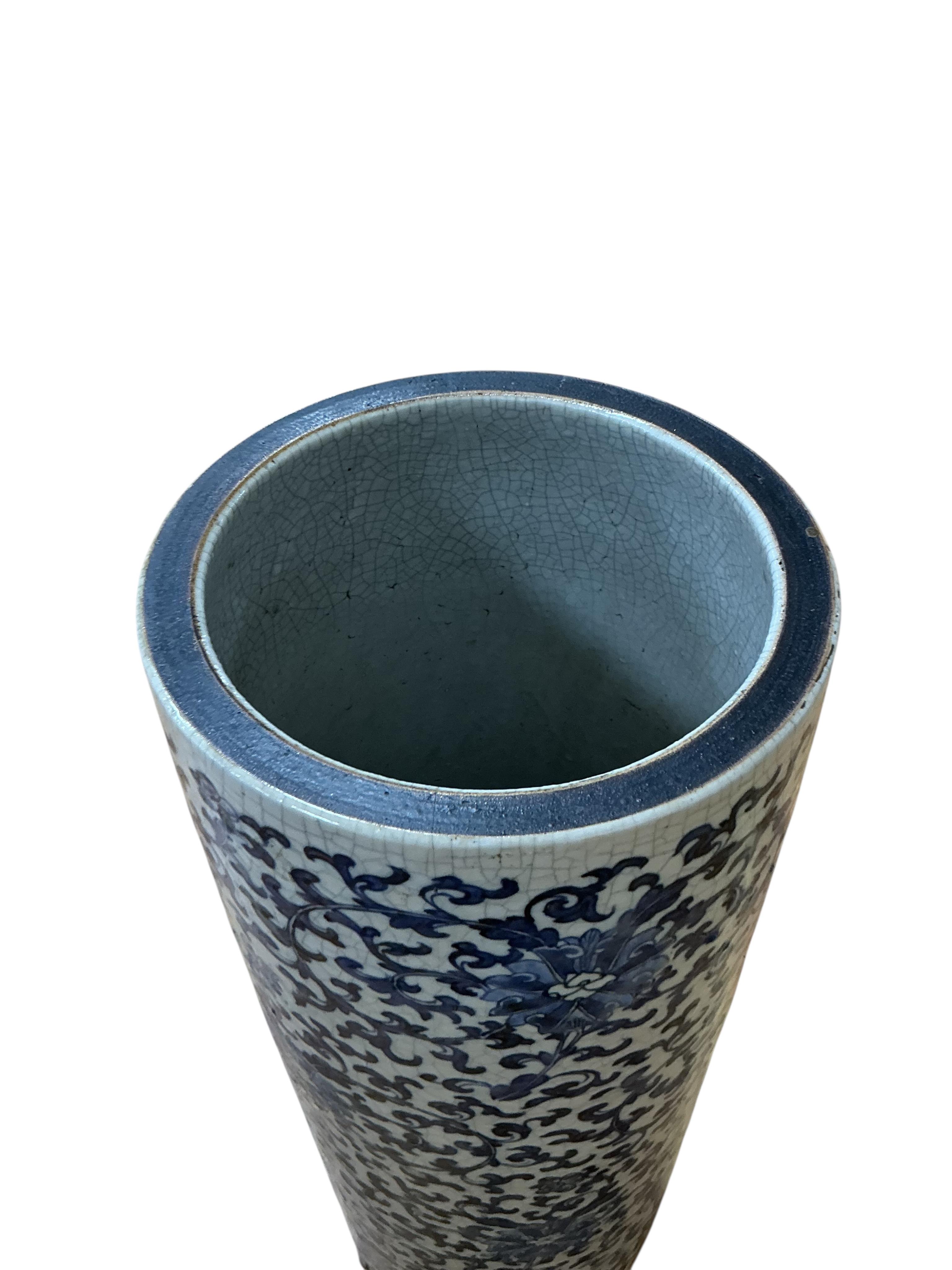 A Chinese blue and white crackleglaze stick stand, height 62cm.