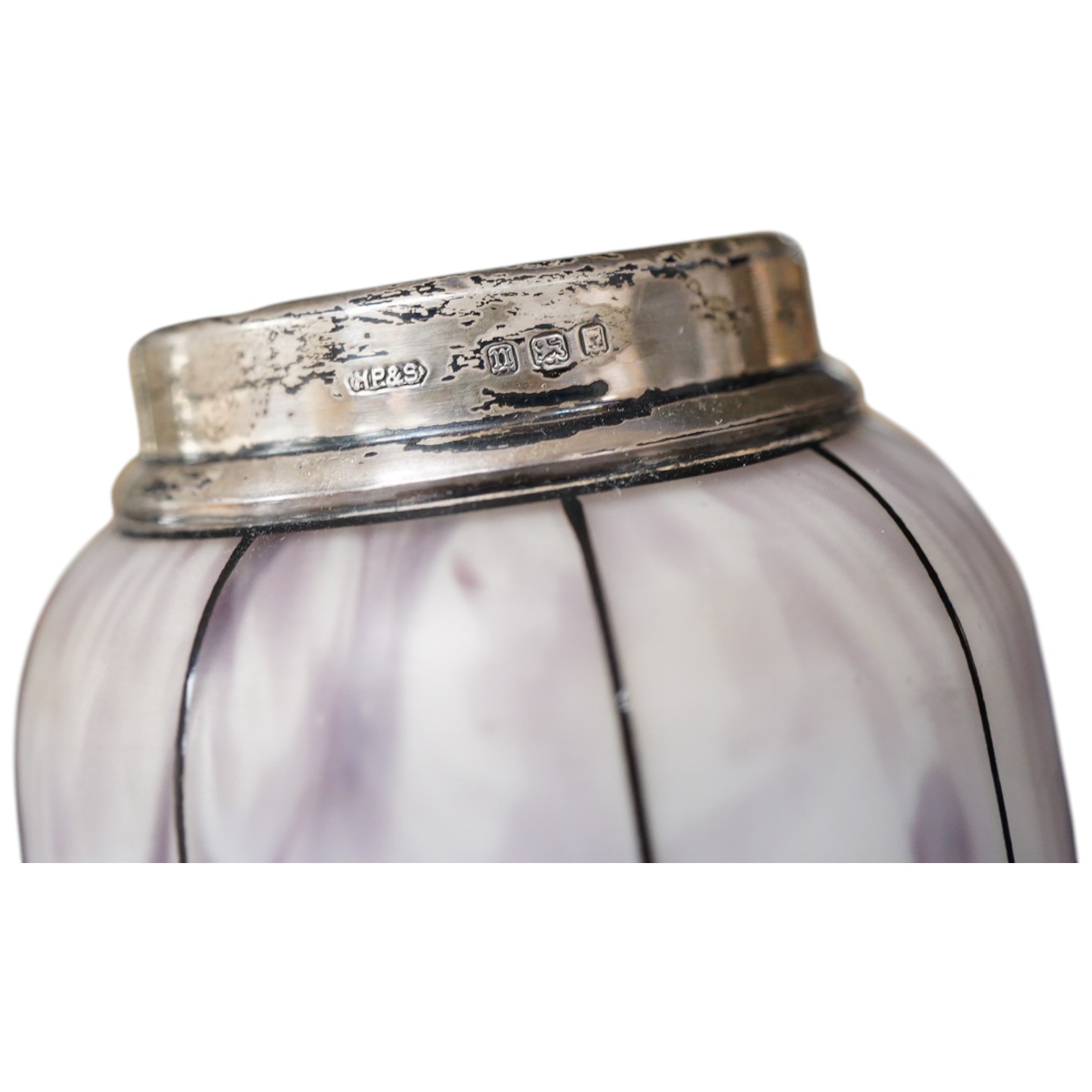 A silver-mounted Art Deco opaline and etched glass vase, marks for 1928. Height 16cm